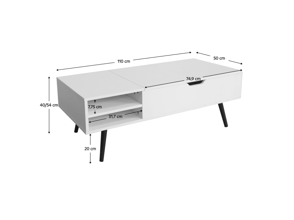 Výška zdvihnutej vrchnej dosky: 54 cm