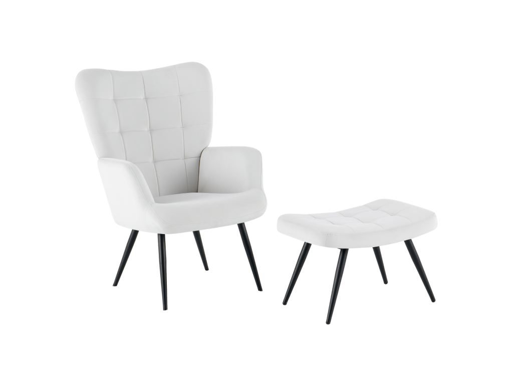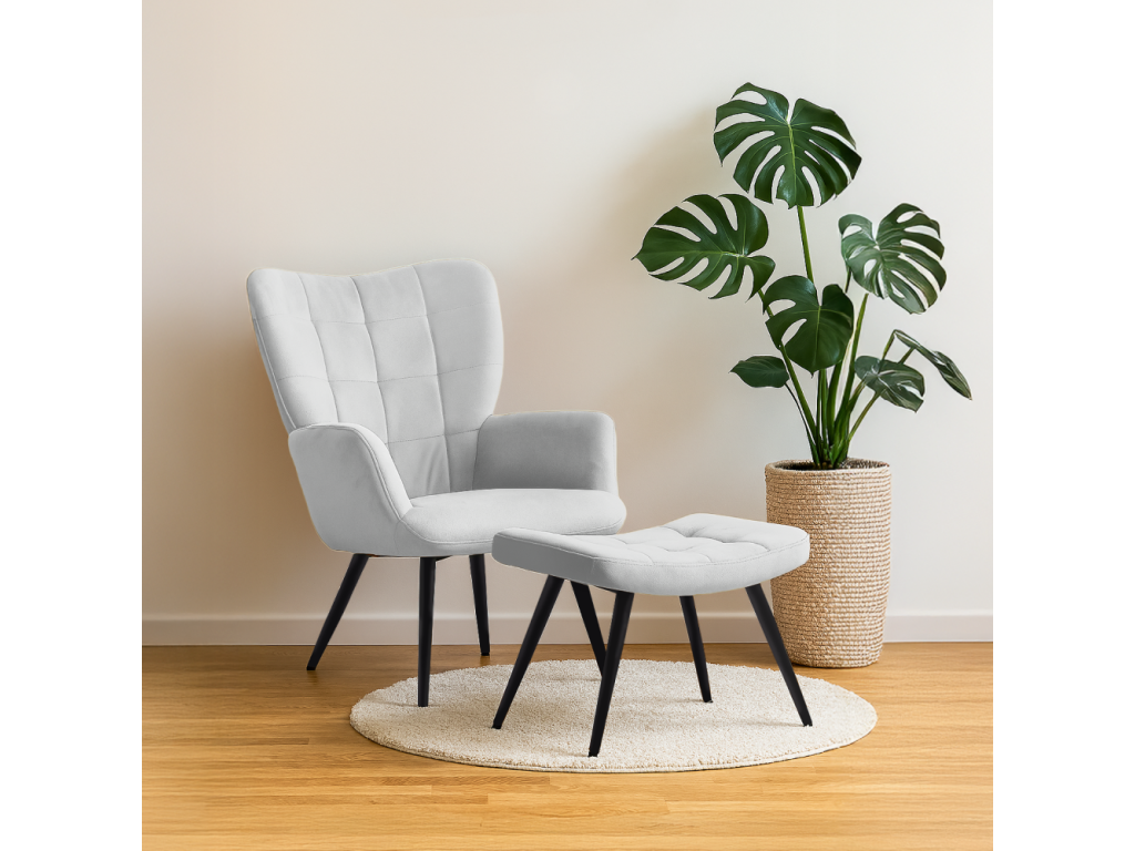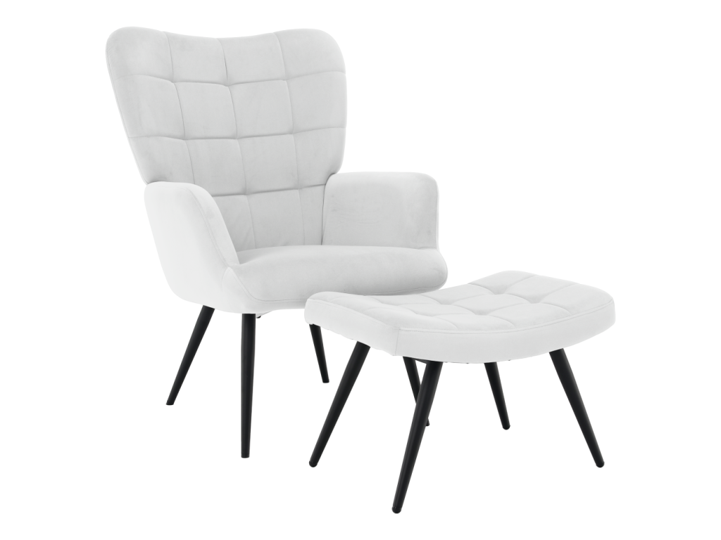 Kreslo s podnožou, svetlosivá Velvet látka/čierna, HABEN