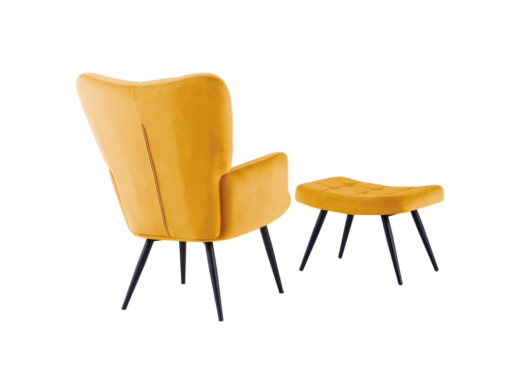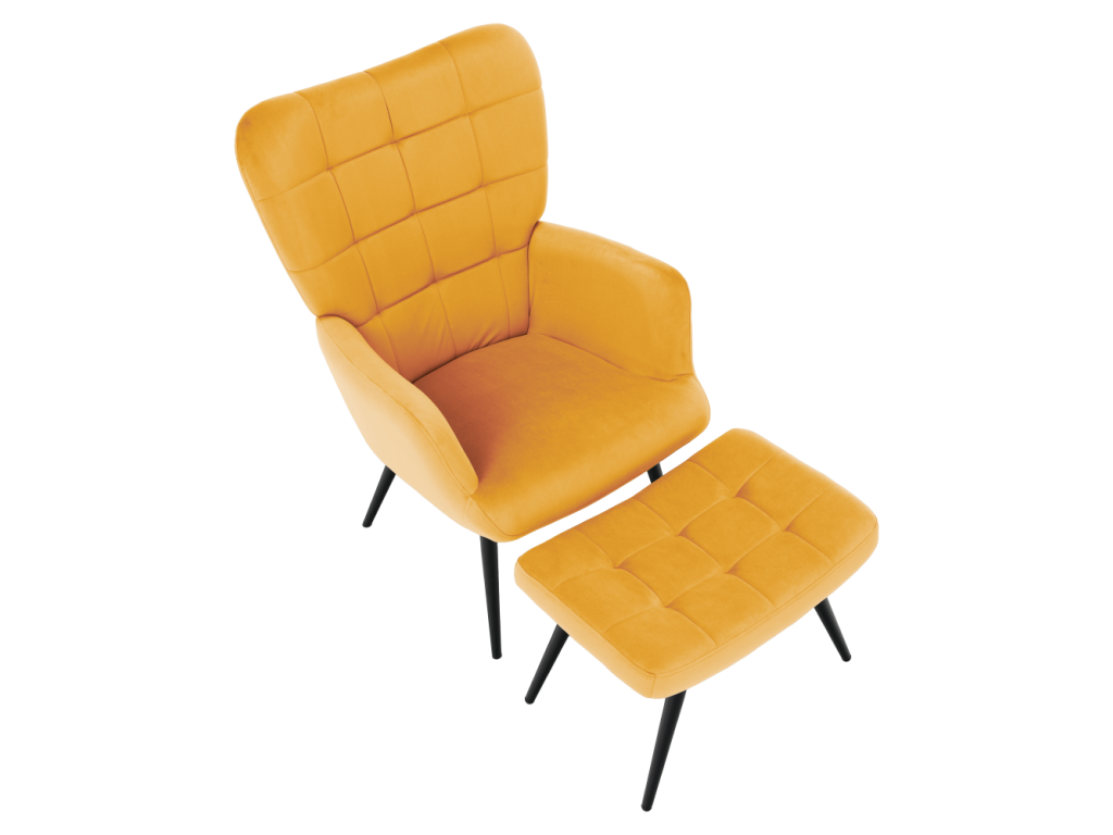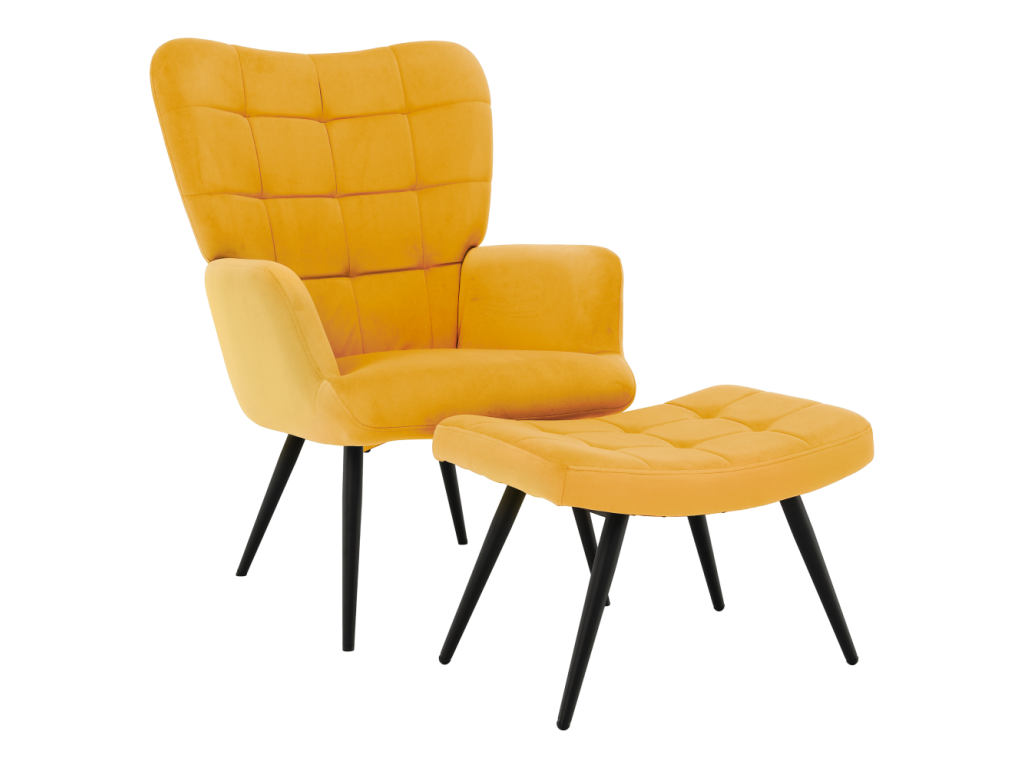 Kreslo s podnožou, žltá Velvet látka/čierna, HABEN