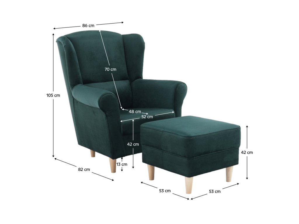 Kreslo ušiak s taburetom, látka smaragdová, ASTRID
