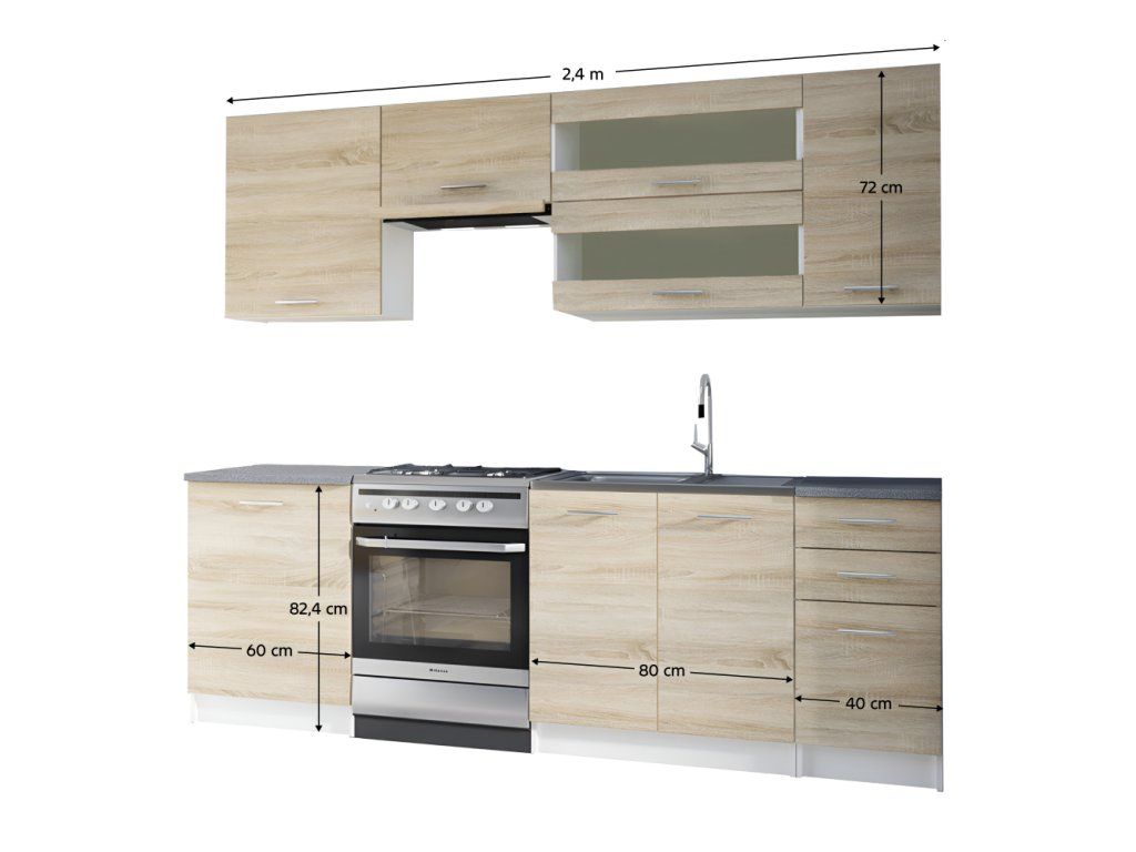 Kuchynská linka 2,4 m, dub sonoma / biela, FABIANA