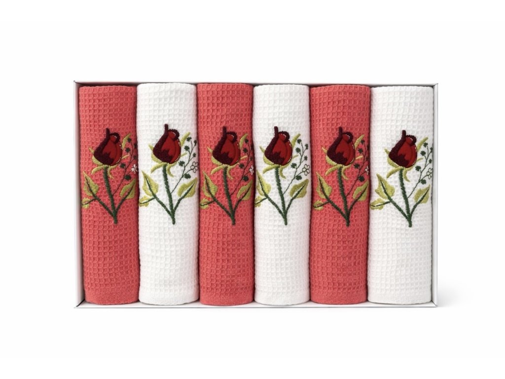 Kuchynské utierky "vaflové" s výšivkou - set 6ks, balené v darčekovom balení.