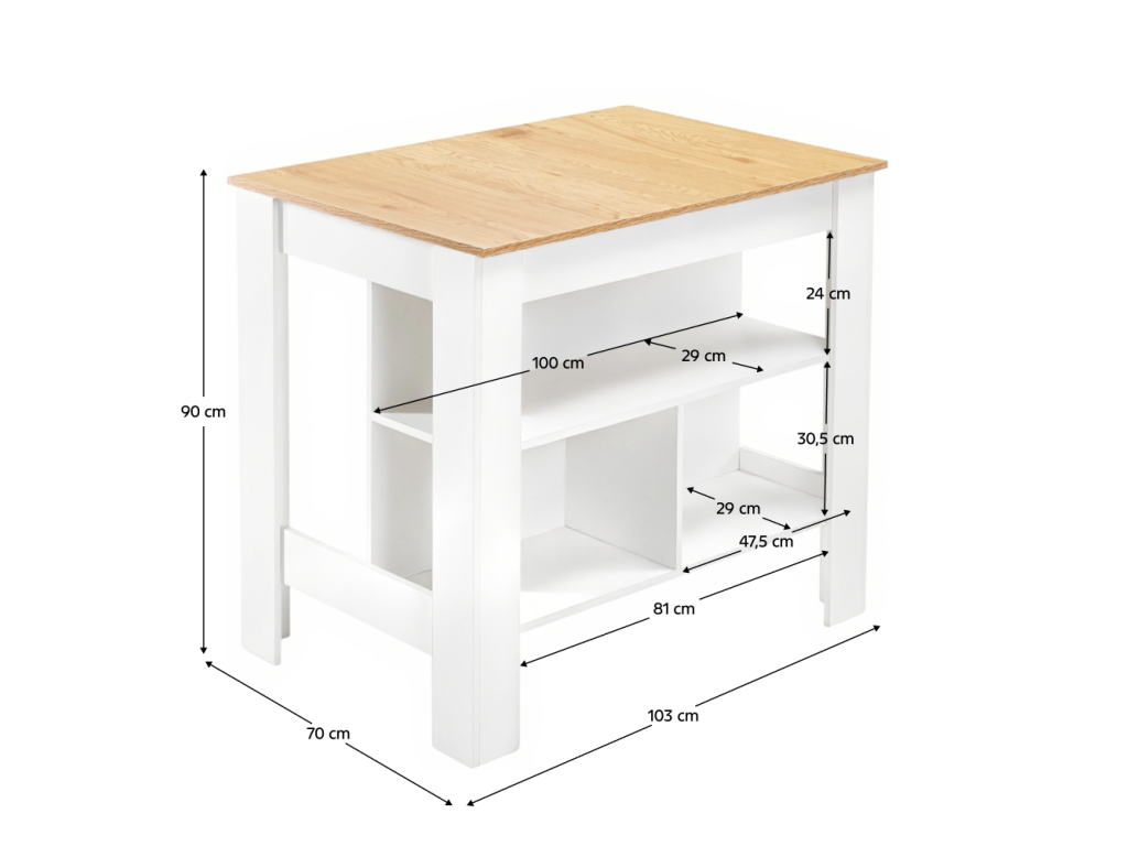 Kuchynský ostrovček, 103x70 cm, dub/biela, LUNAN