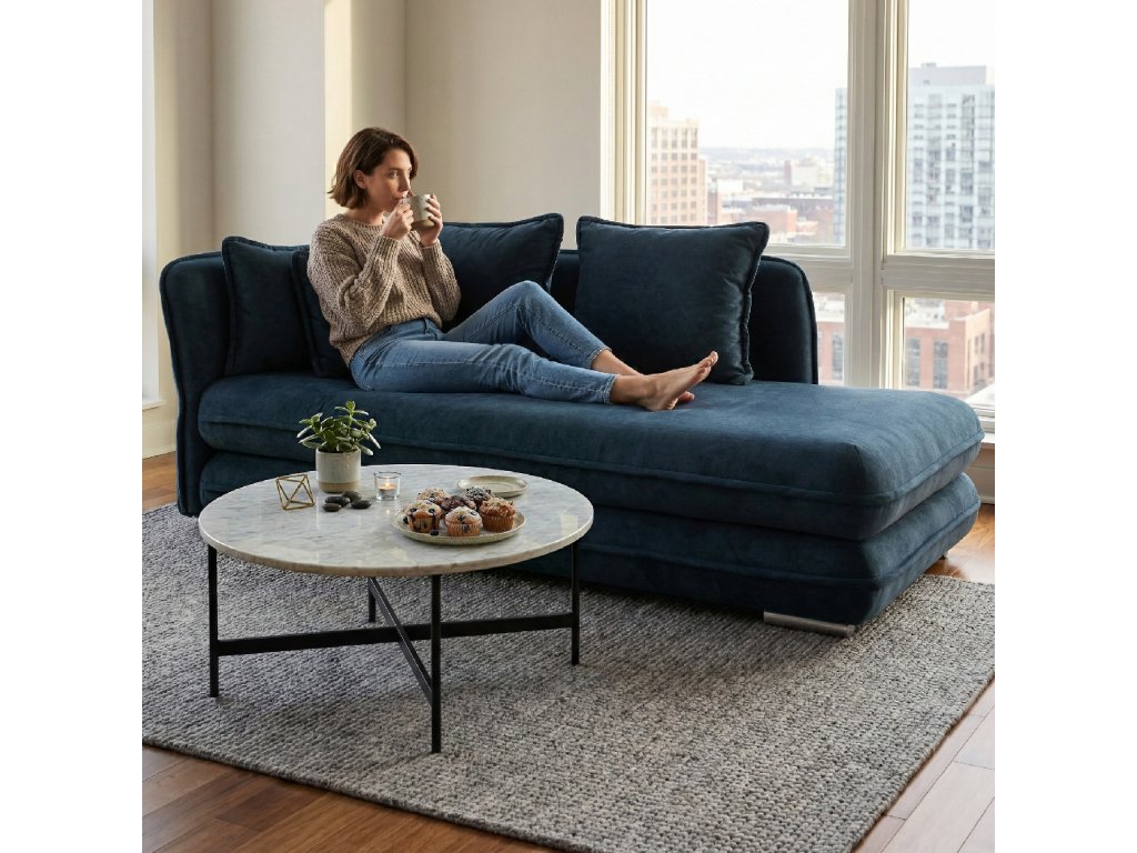 Leňoška s úložným priestorom, modrá, ľavá, LAMBA