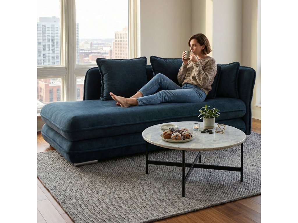 Leňoška s úložným priestorom, modrá, pravá, LAMBA