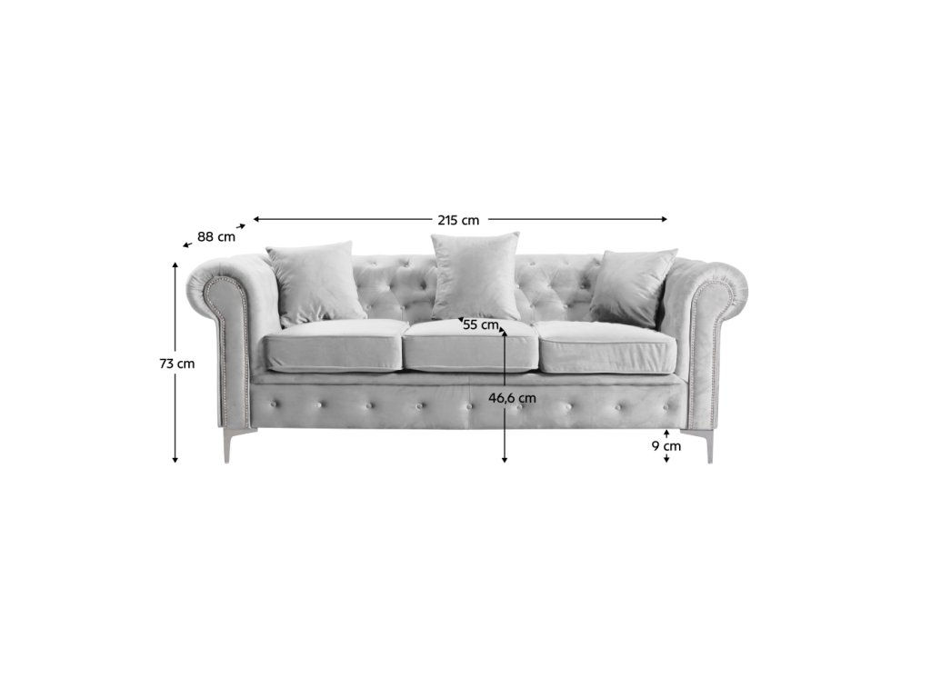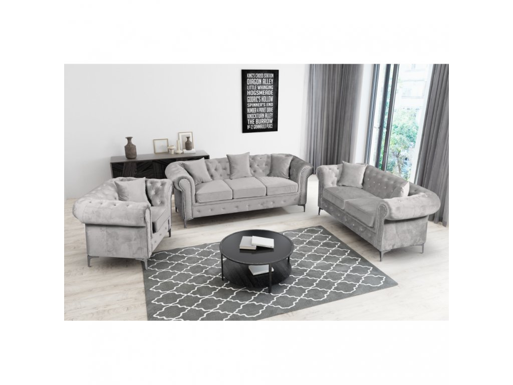 Luxusný 3-sed, svetlosivá Velvet látka, ROMANO