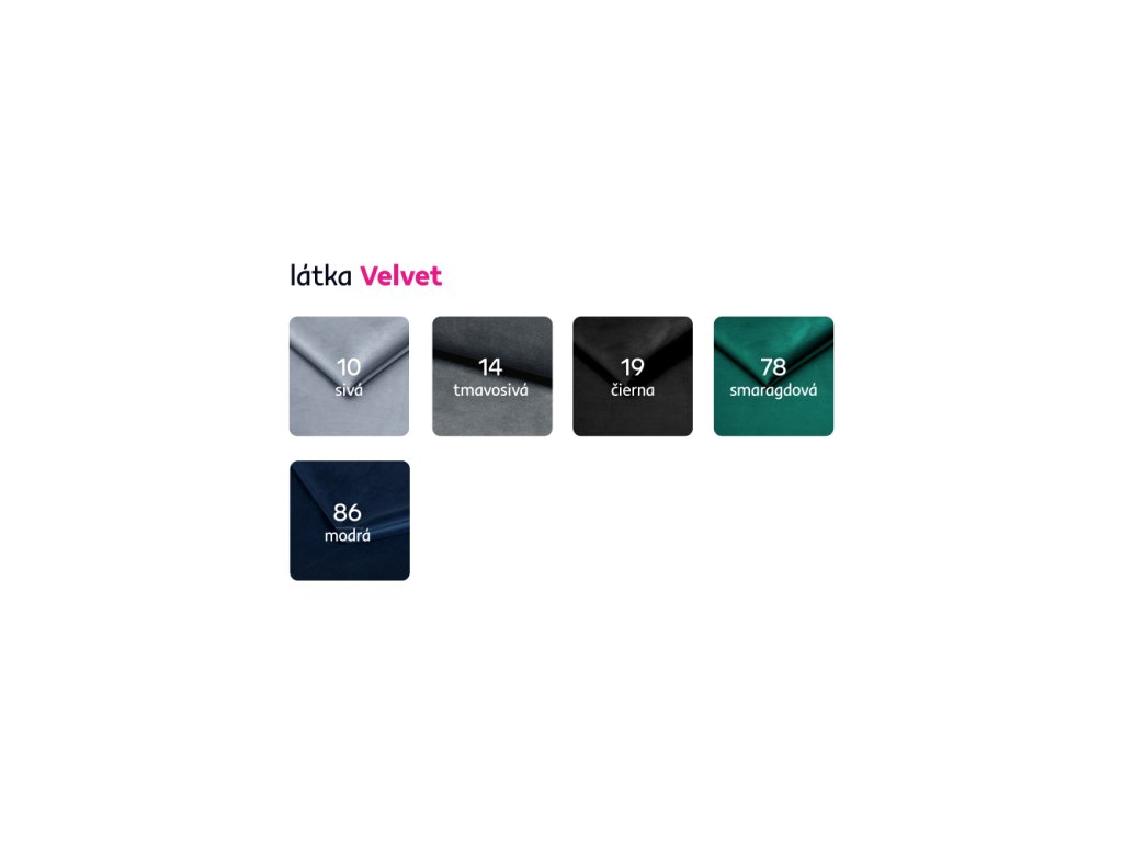 Materiál čalúnenie: látka Velvet 03Oderuodolnosť látky podľa testu Martindale: 50 000 oderov