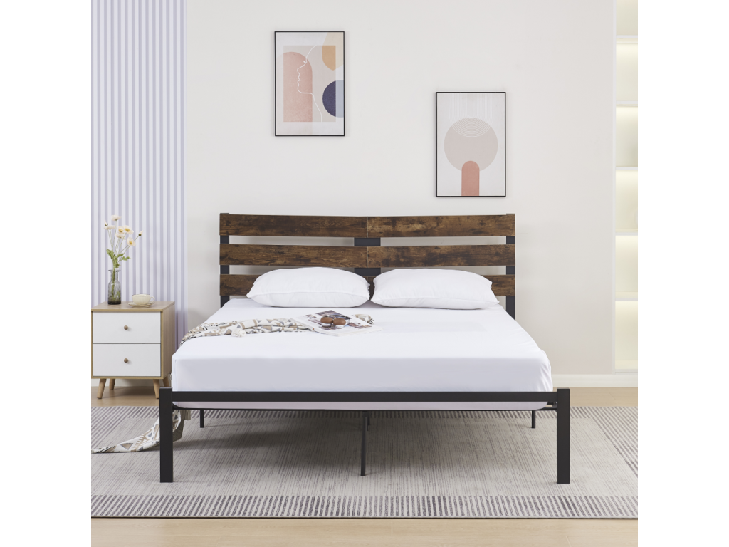Manželská posteľ s roštom, dub rustikal/kov, 180x200, ANEYA