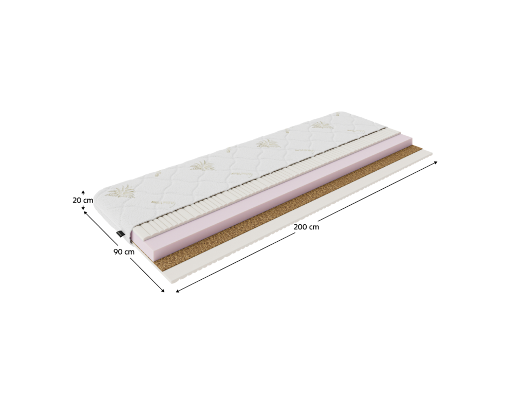 Materiál: PUR pena T25/kokosová vrstva T28Rozmery (ŠxD): 90x200 cm