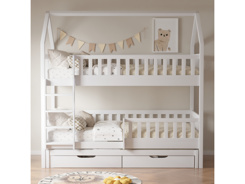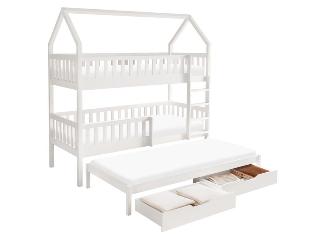 Montessori poschodová posteľ s prístelkou, biela, VENITA TYP 1