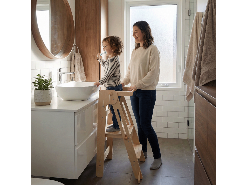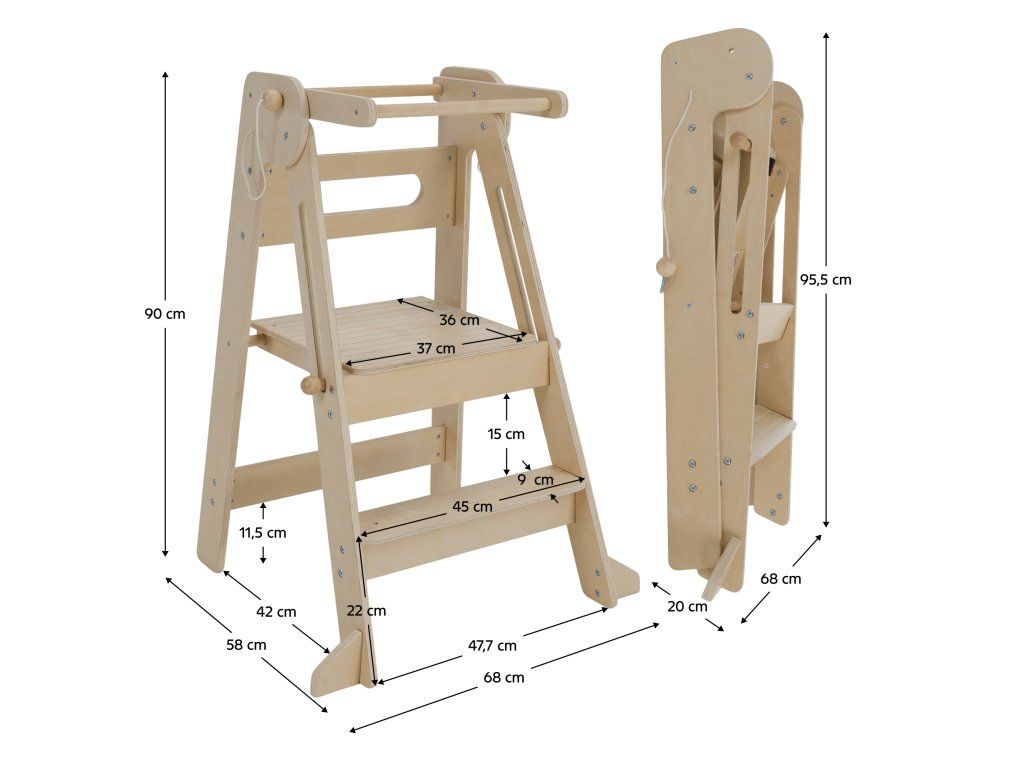 Montessori skladacia učiaca veža, prírodná, URIAN