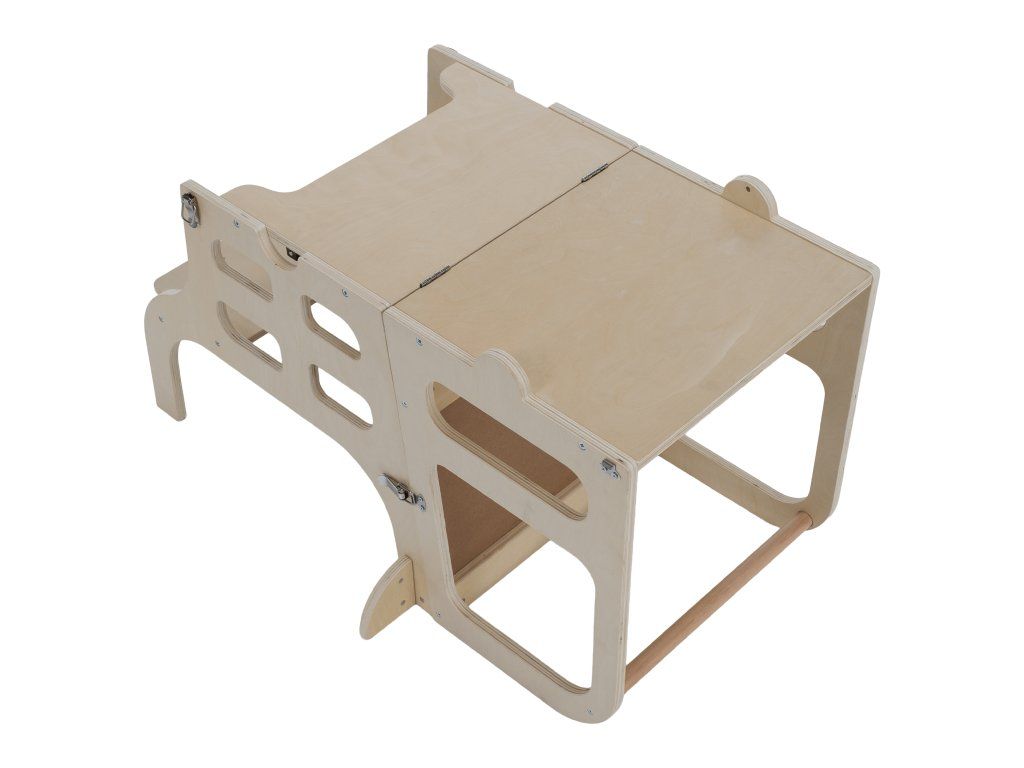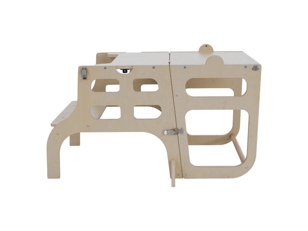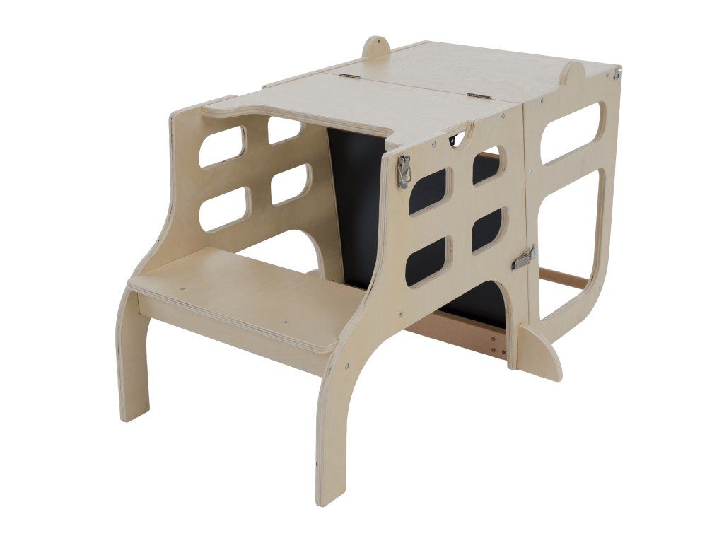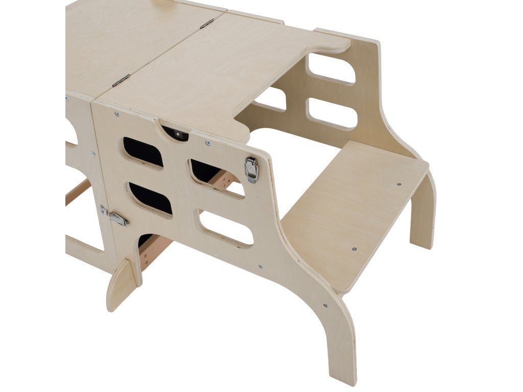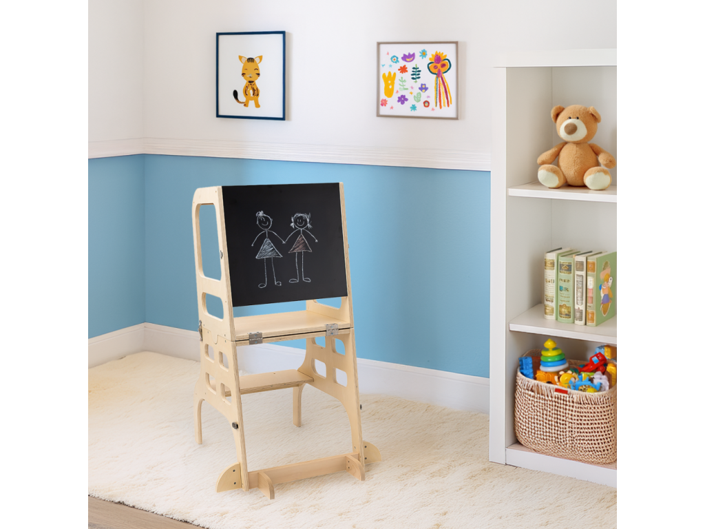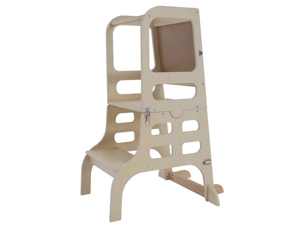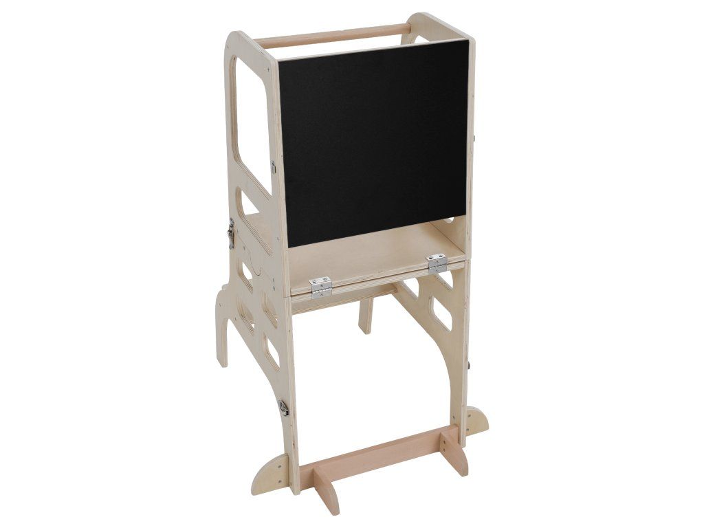 Montessori učiaca veža 3v1 s tabuľou, prírodná, MAGAN