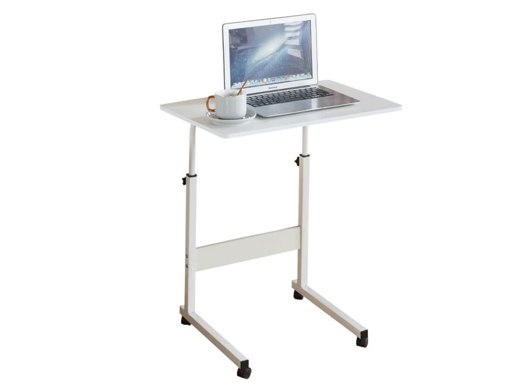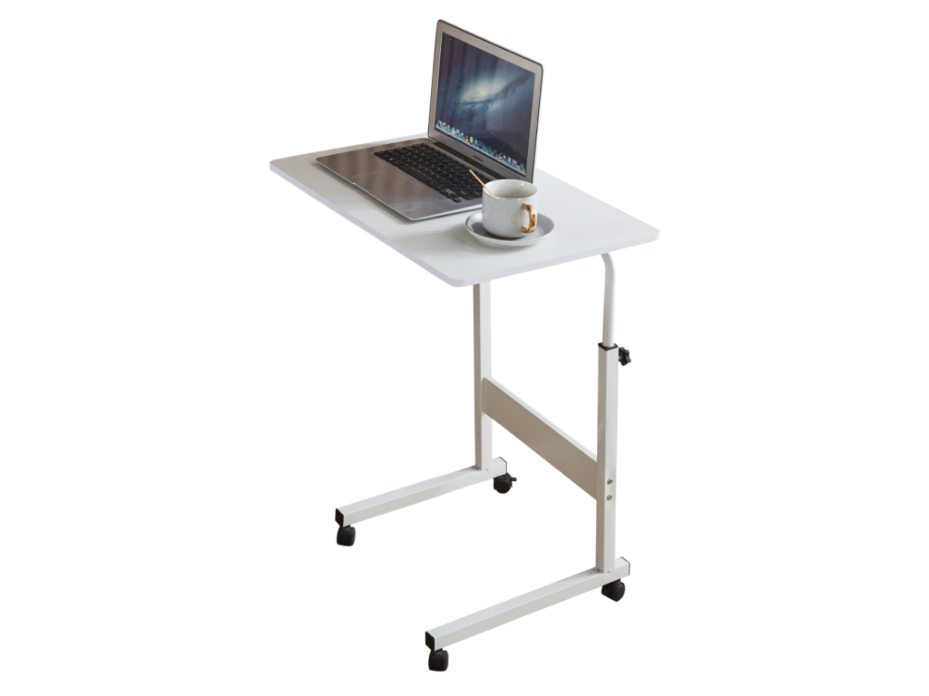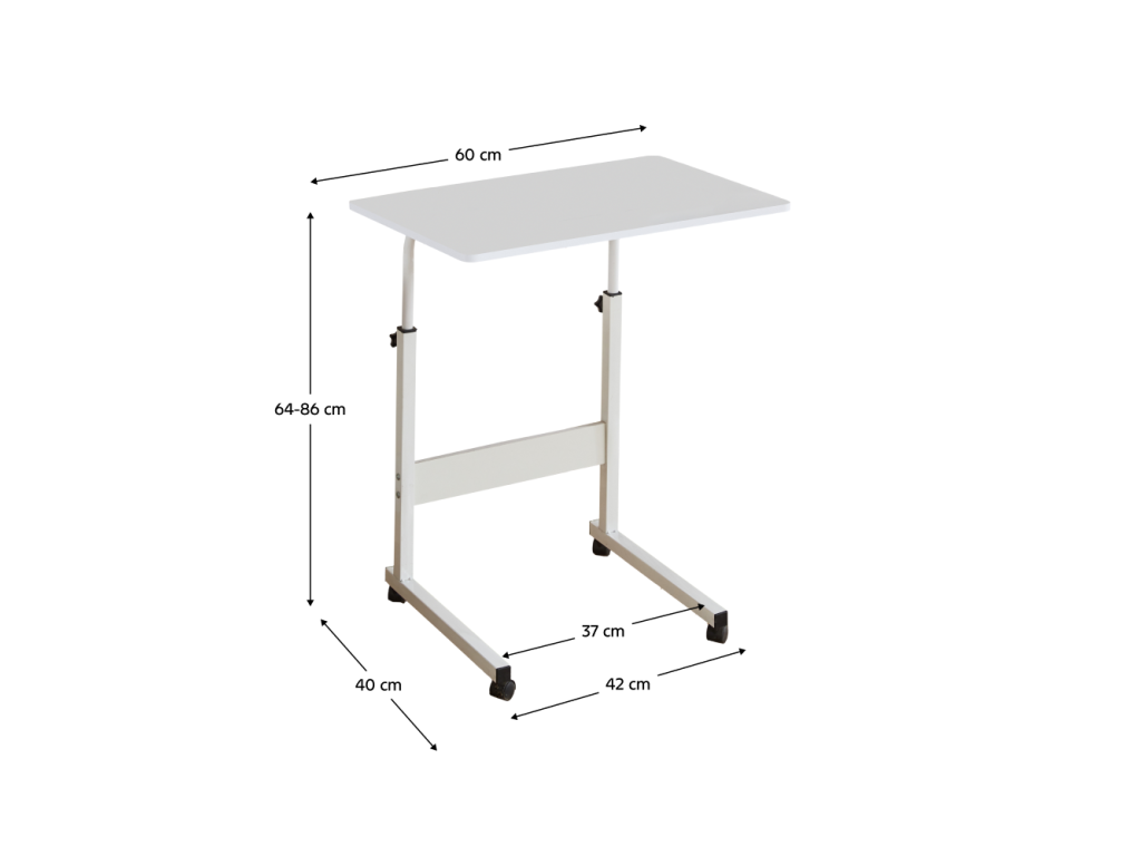 Nastaviteľný PC stôl s kolieskami, biela, JUSTUS