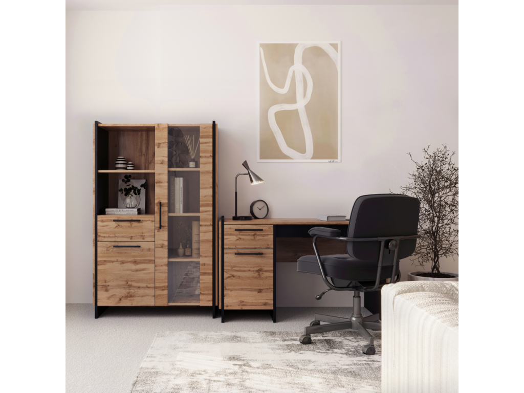 Nízka vitrína, dub wotan/čierna, AMONI 1D1W1S