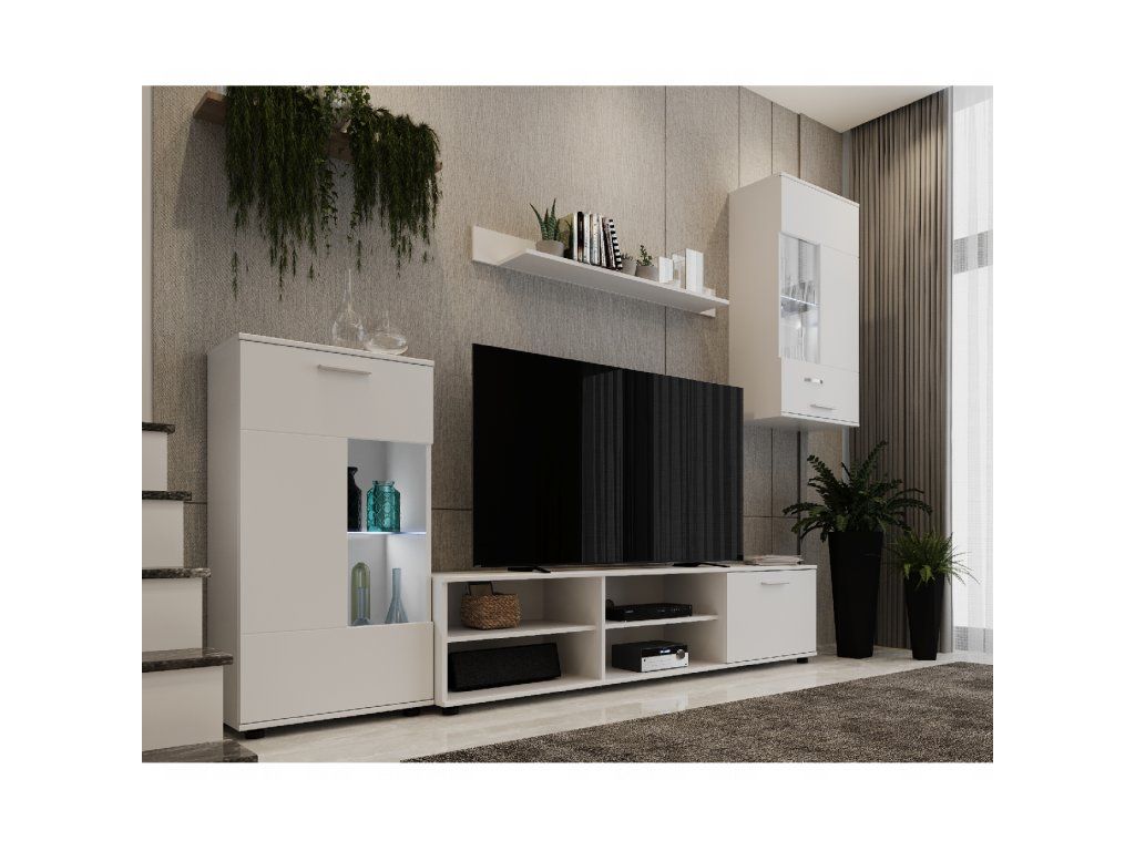 Obývacia stena, biela, DTD fóliovaná, FRONTAL 1 NEW