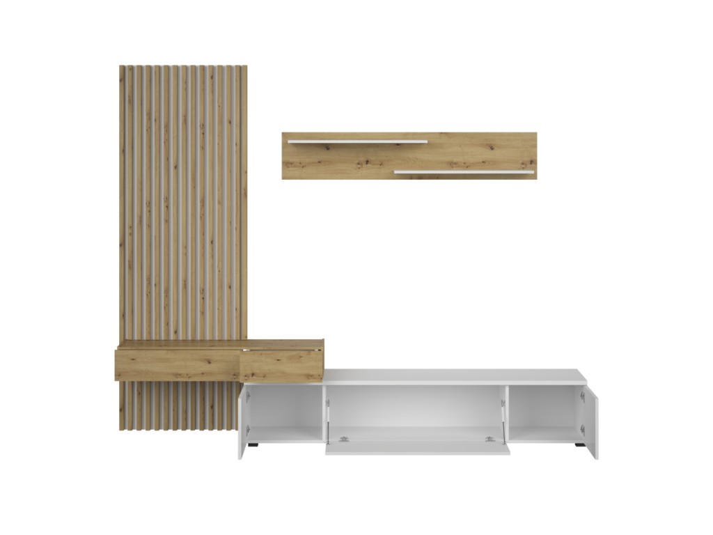 Obývacia stena, biela/dub artisan, REBEKA PLUS