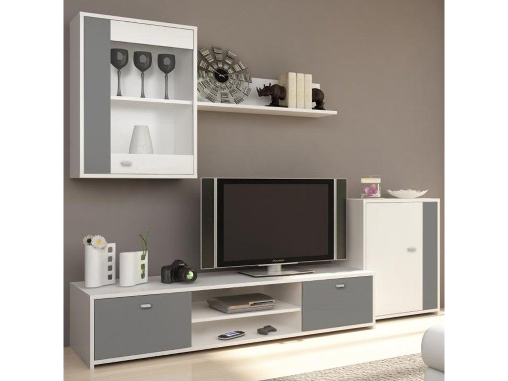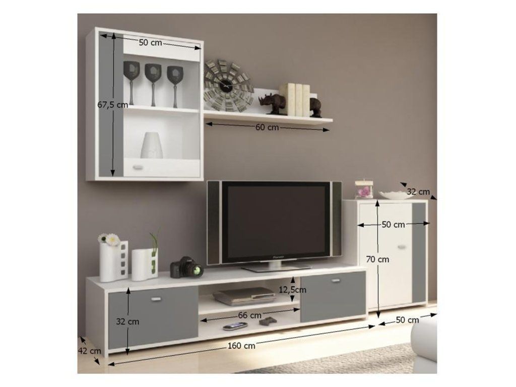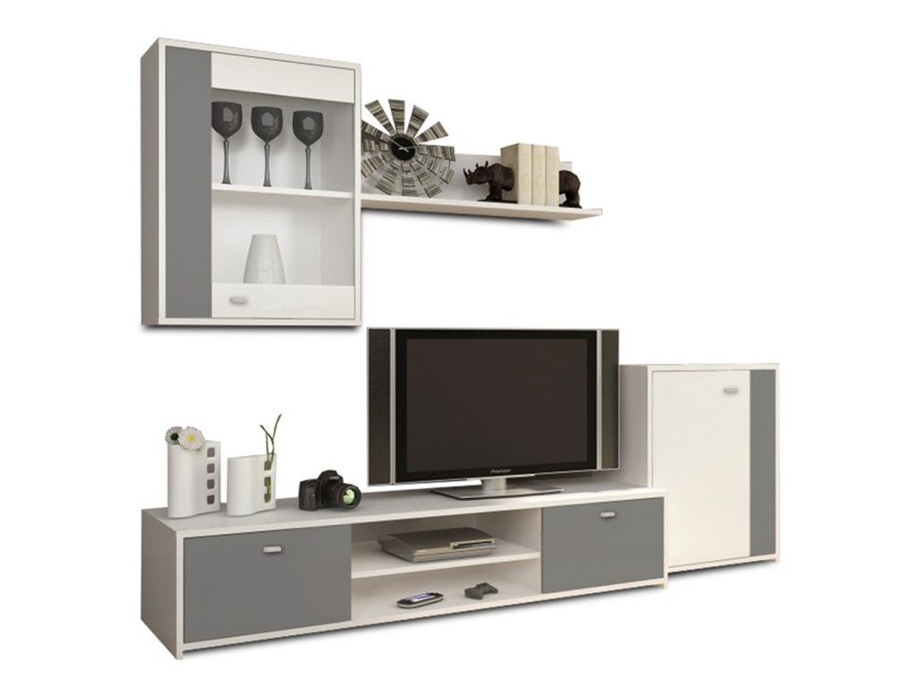 Obývacia izba GENTA vo farebnom prevedení biela/sivá. Materiál laminovaná DTD a ABS hrany.Rozmery celej obývacej steny (ŠxHxV): 210x42x180 cm