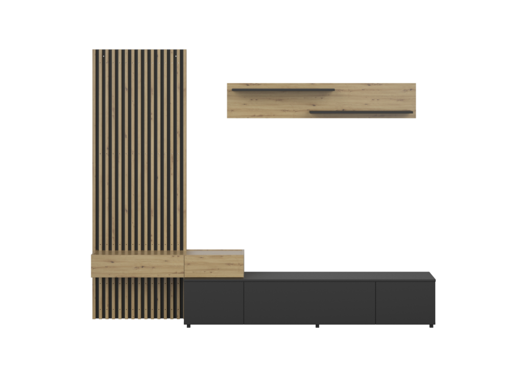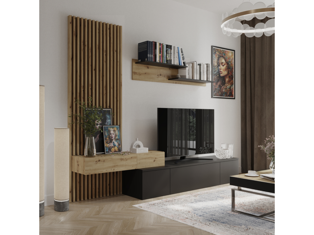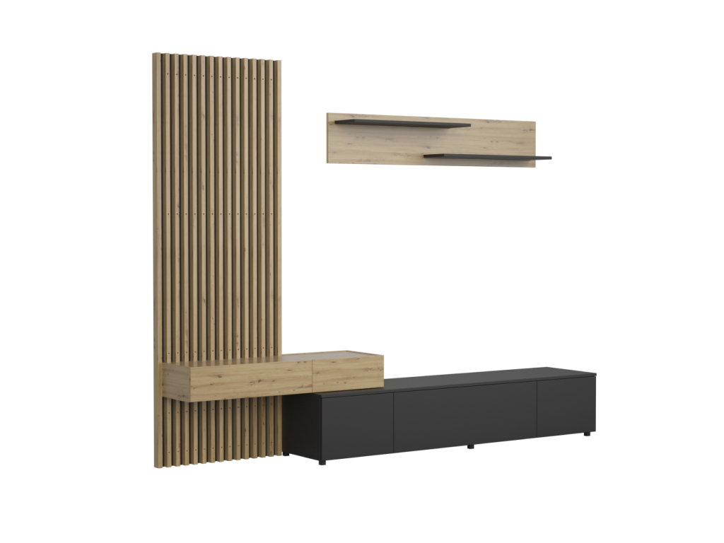 Obývacia stena, čierna/dub artisan, REBEKA PLUS
