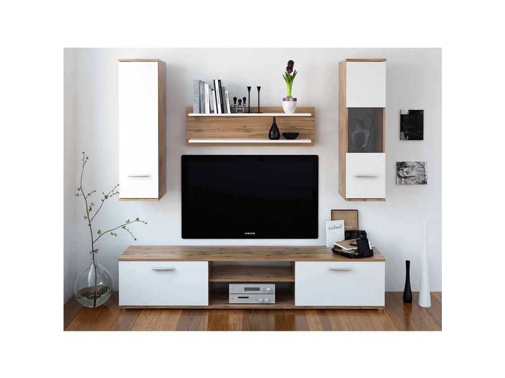 Obývacia stena, dub wotan/biela, WAW NEW