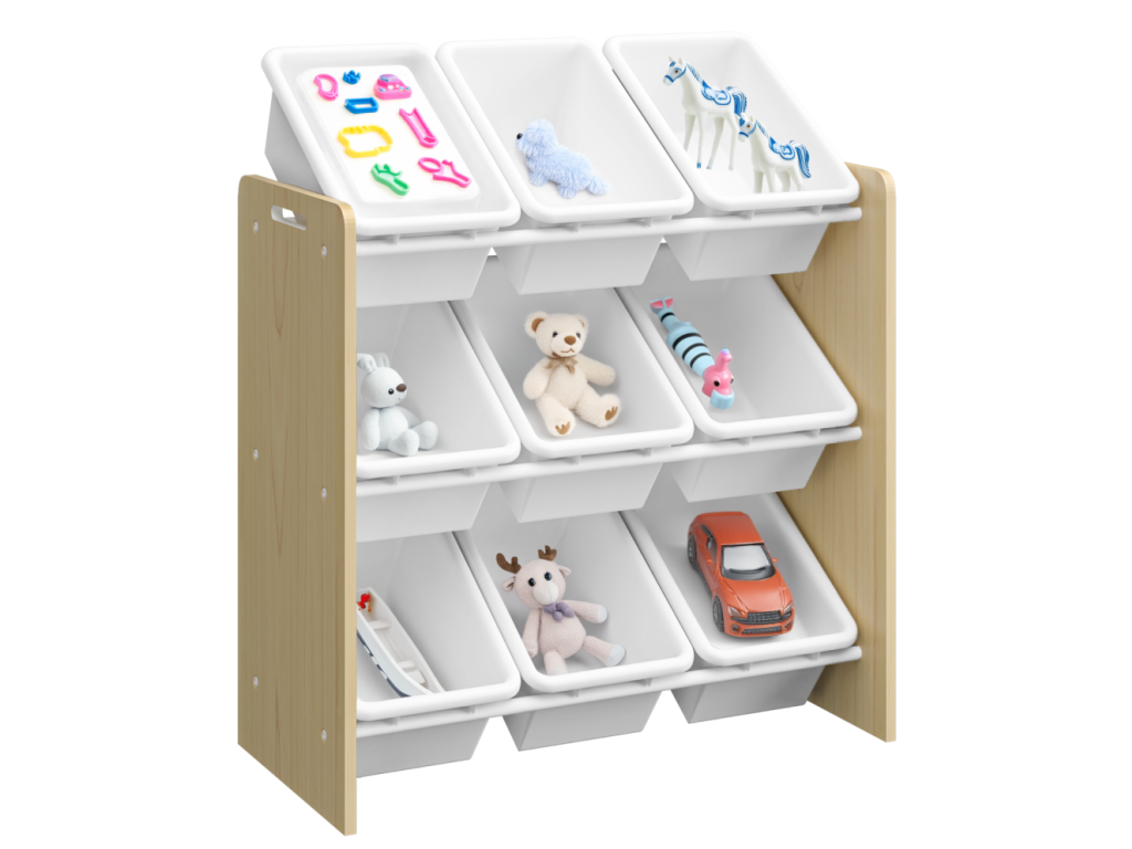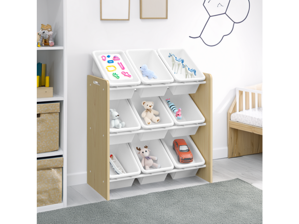 Organizér/regál na hračky, prírodná/biela, BOIS