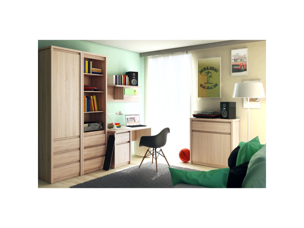 Otvorený regál so šuplíkmi 3S, dub sonoma, NORTY TYP 6