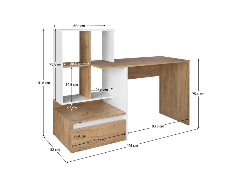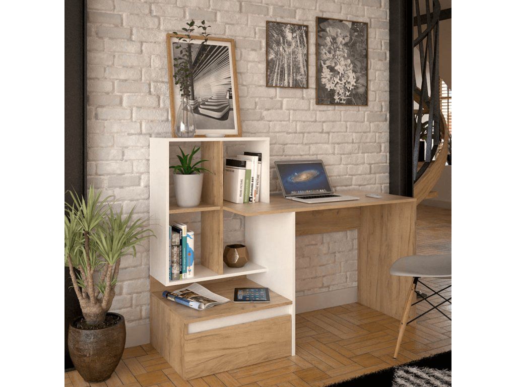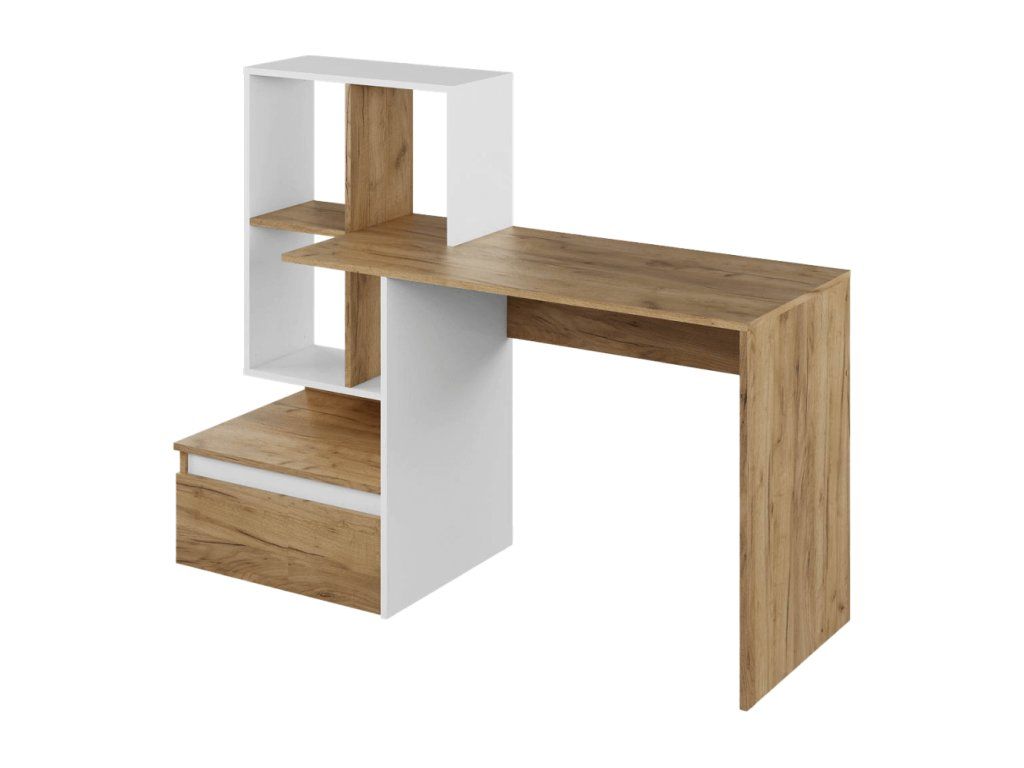 PC stôl, dub artisan/biela, NEREO NEW