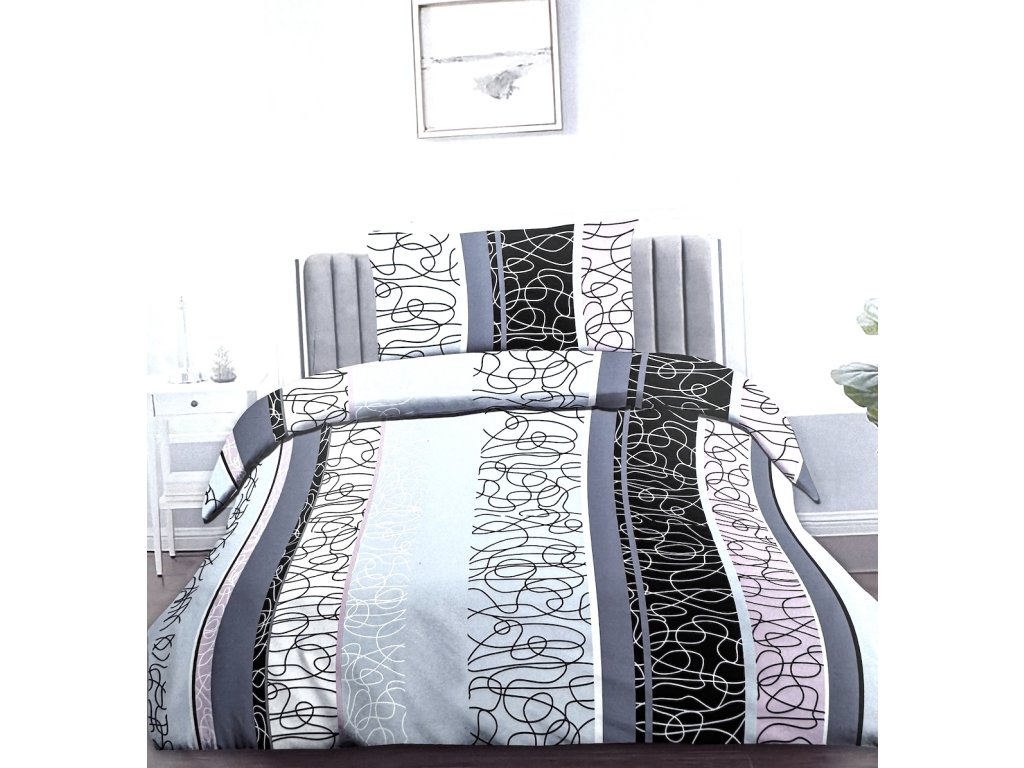 PINK-BLACK-GREY bavlnené obliečky DeLuxe