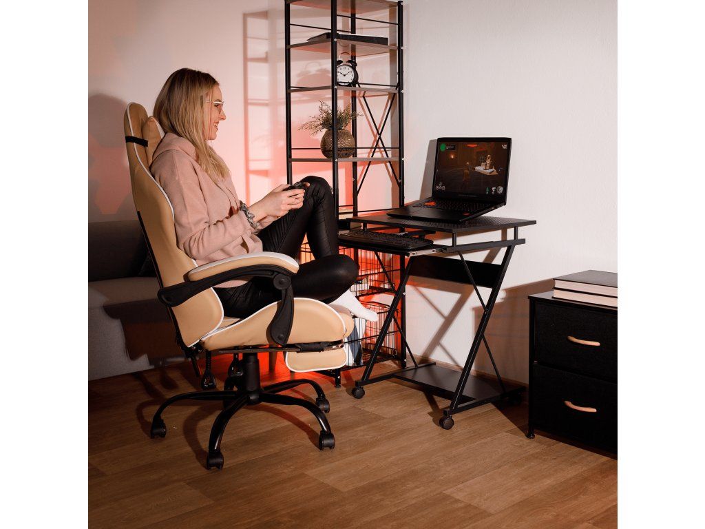 Pojazdný PC stôl/herný stôl s kolieskami, čierna, TARAK