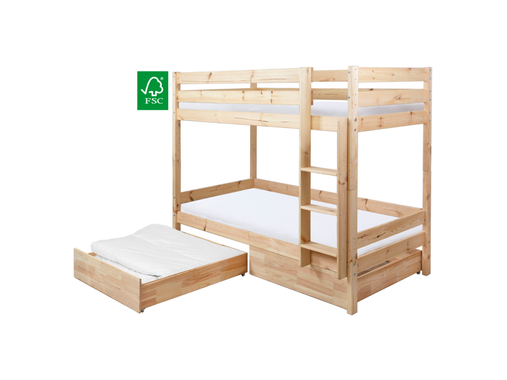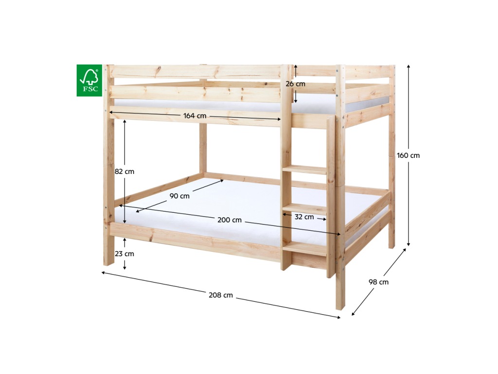 Poschodová posteľ so zábranou, 90x200, smrek, BENY