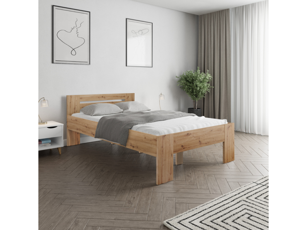 Posteľ, 140x200, dub artisan, BASIS