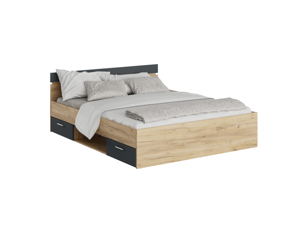Posteľ, 160x200, dub artisan/grafit, MICHIGAN NEW