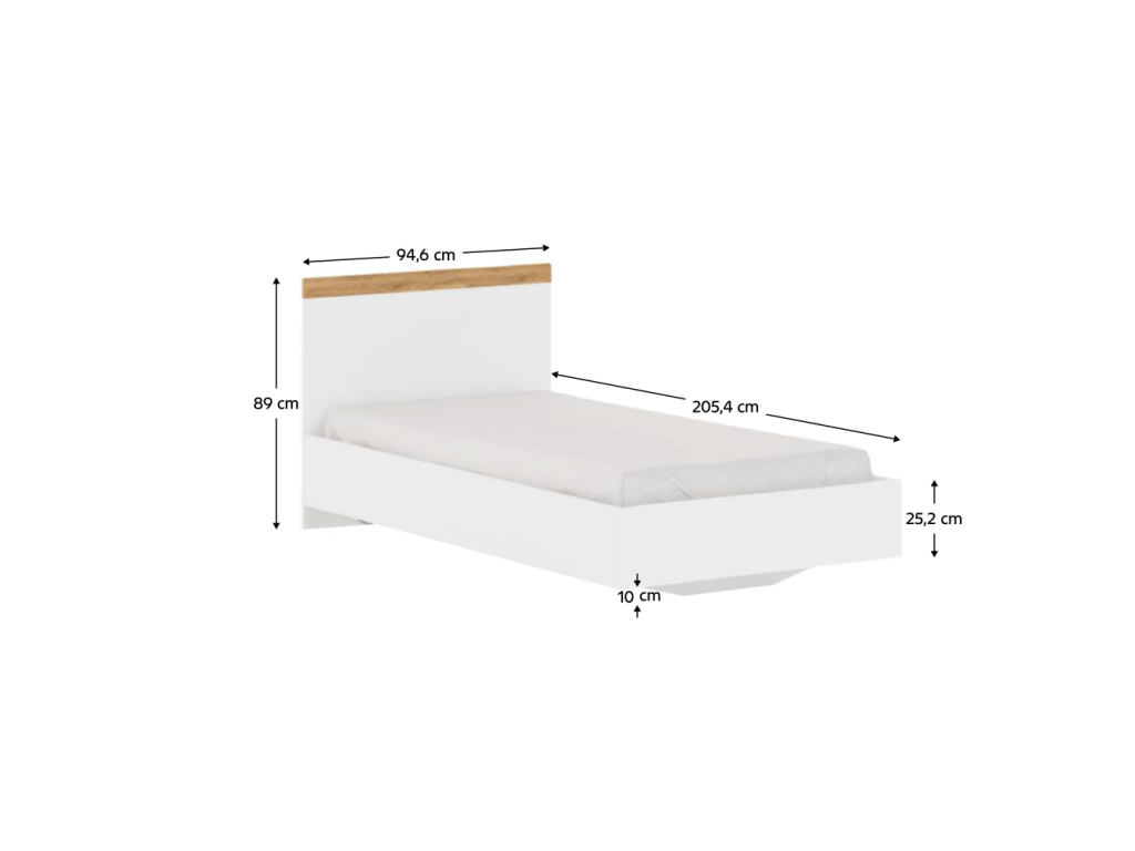 Posteľ, 90x200, biela/dub wotan, VILGO
