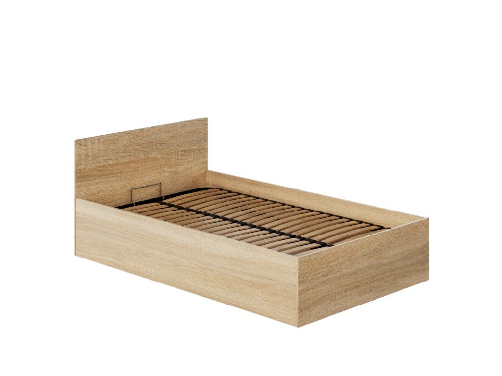 Posteľ s kovovým roštom a úložným priestorom, 120x200, dub sonoma, DOLI