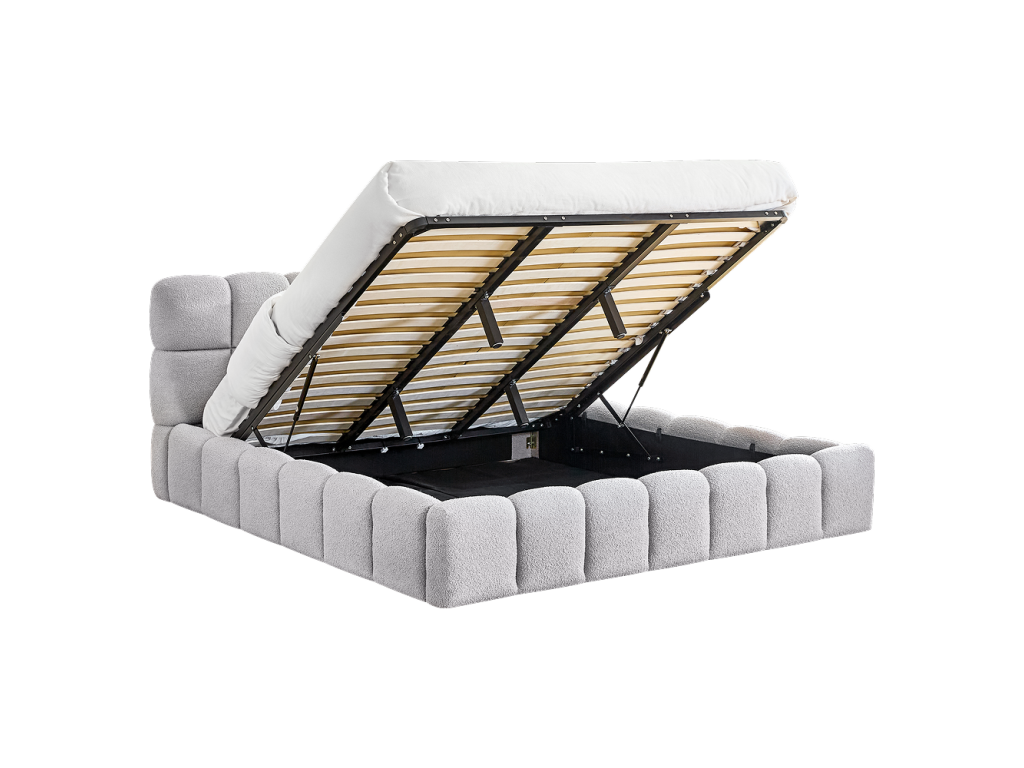 Posteľ s kovovým roštom a úložným priestorom, 200x200, sivá, SORELA