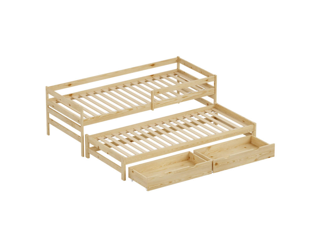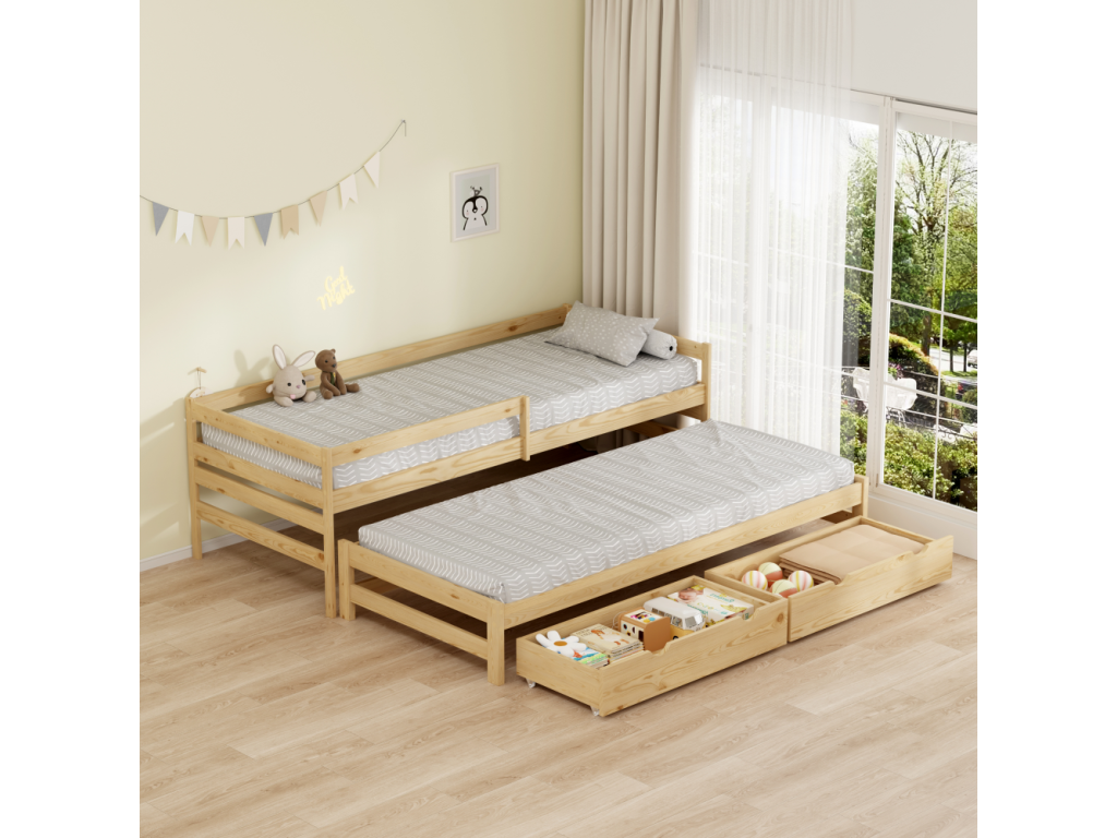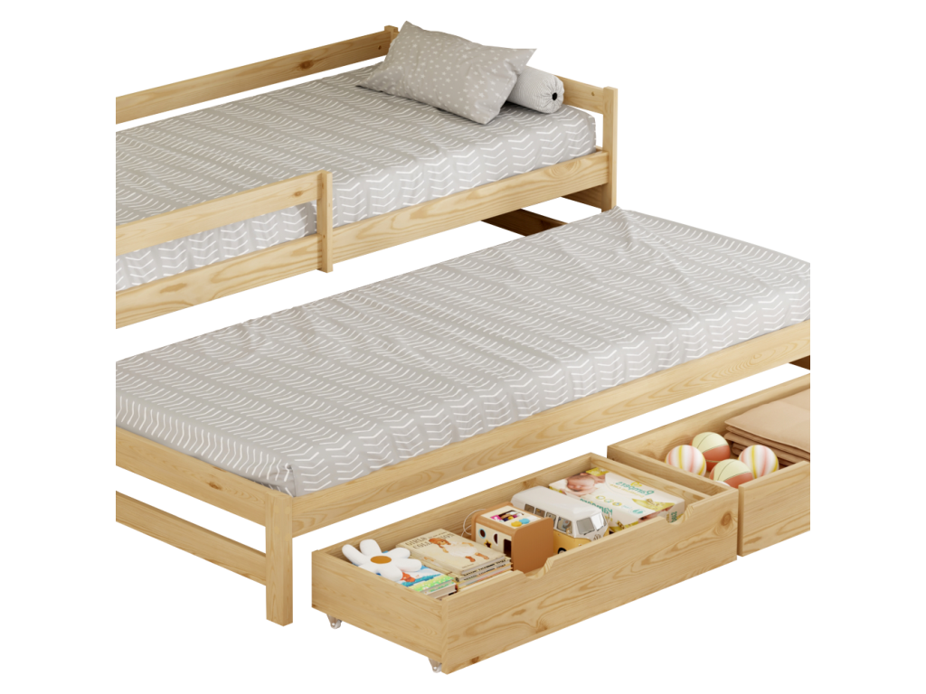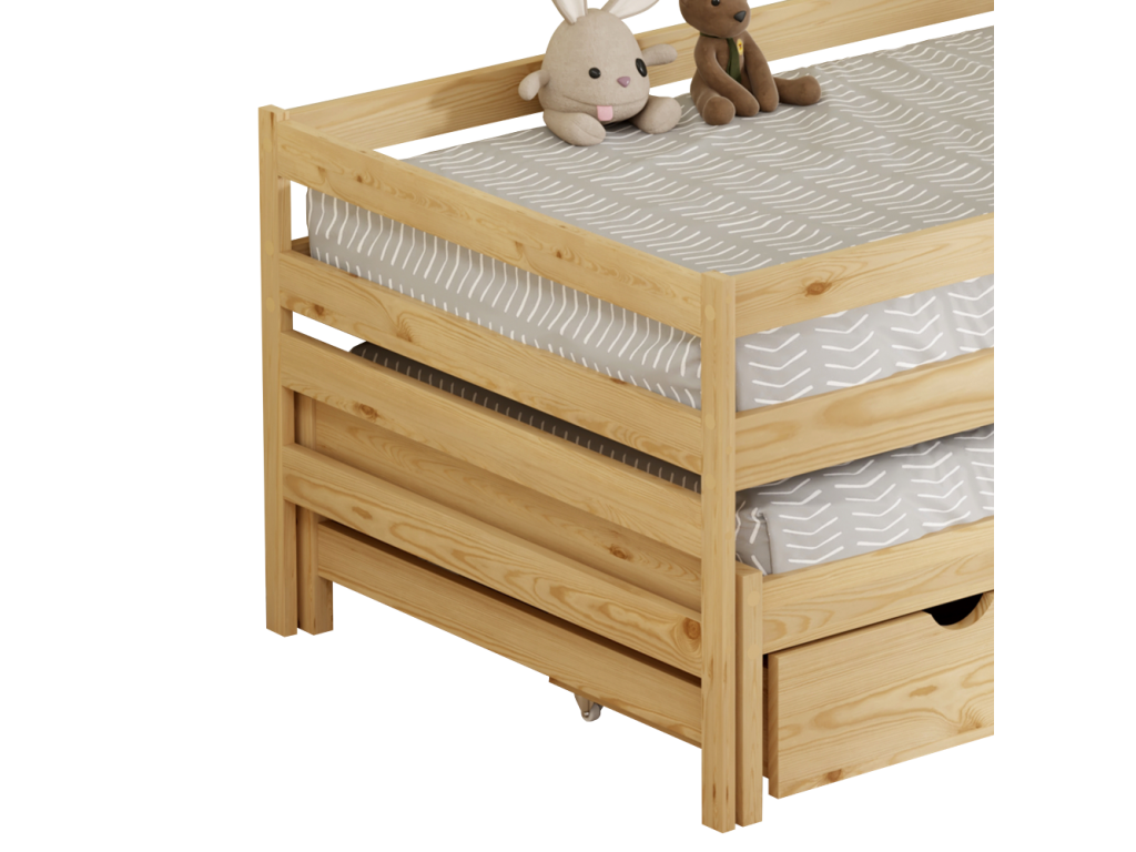Posteľ s prístelkou a úložným priestorom, 90x200, prírodná, ELARA