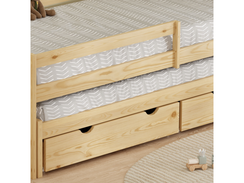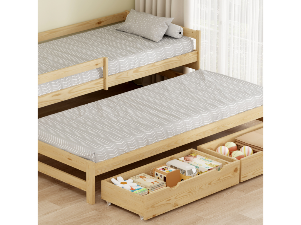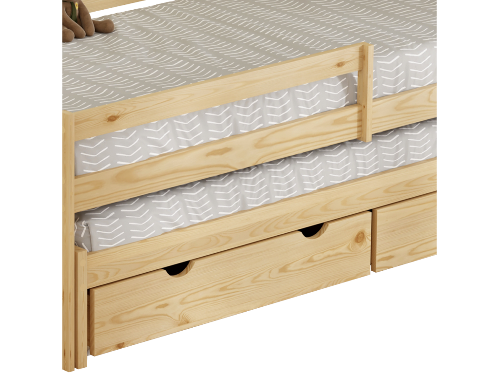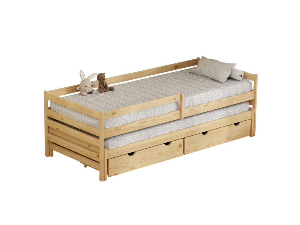 Posteľ s prístelkou a úložným priestorom, 90x200, prírodná, ELARA
