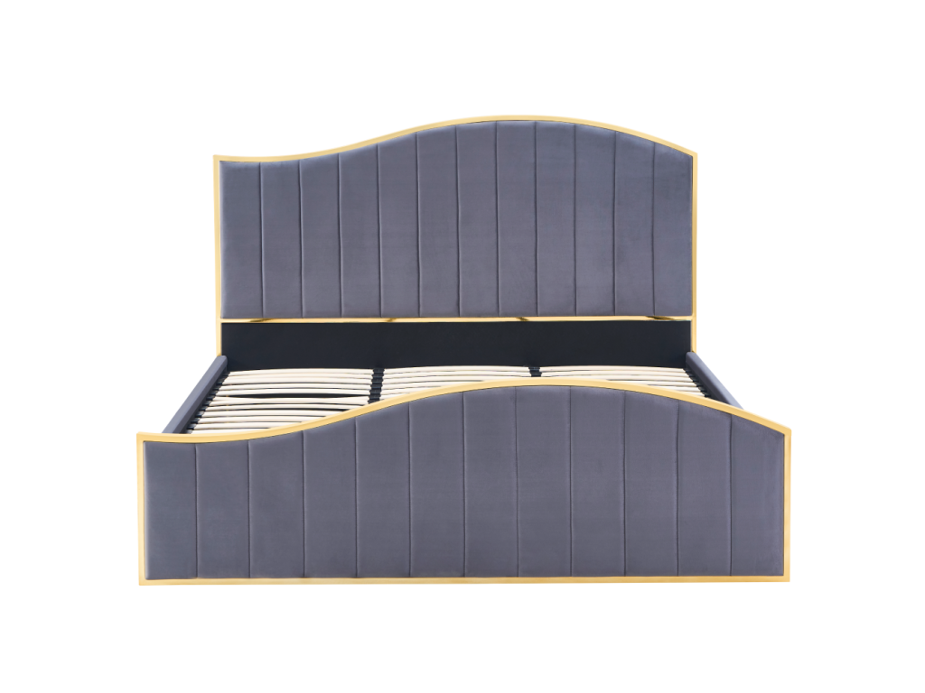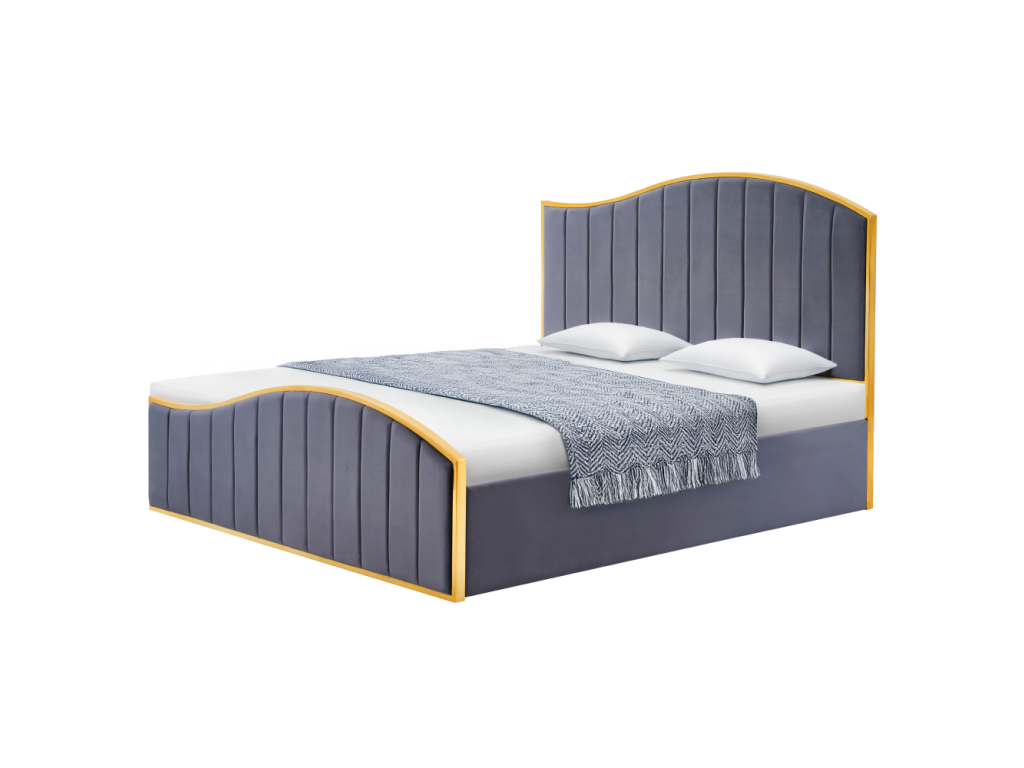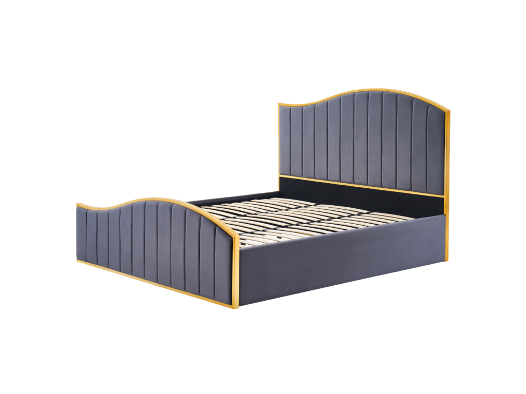 Posteľ s roštom, 160x200, tmavosivá Velvet látka/gold chróm zlatá, GEORGIA