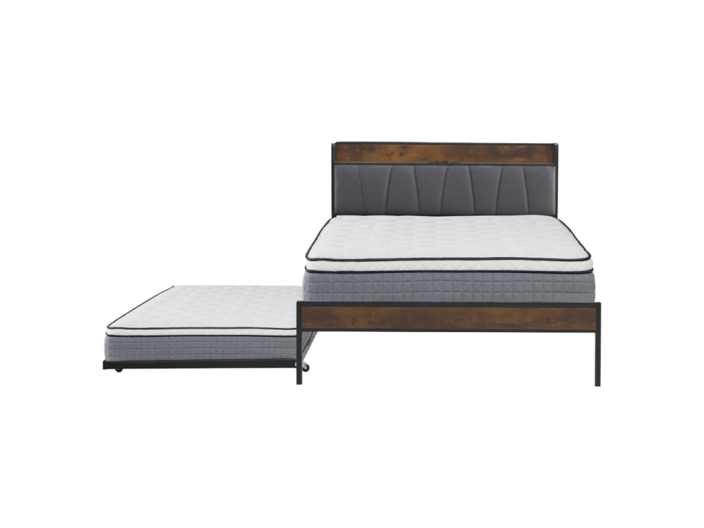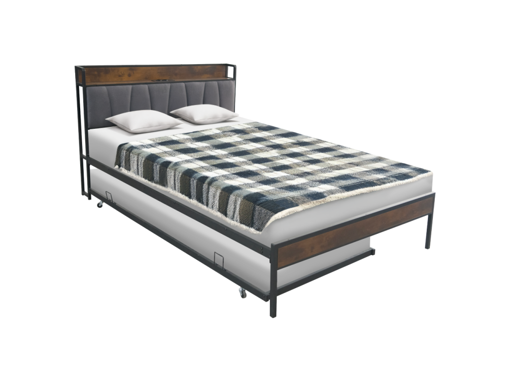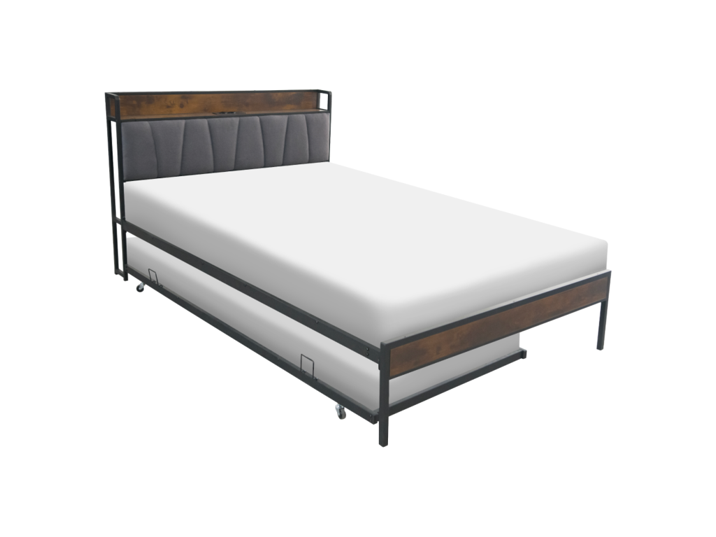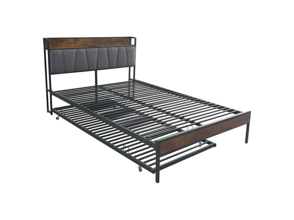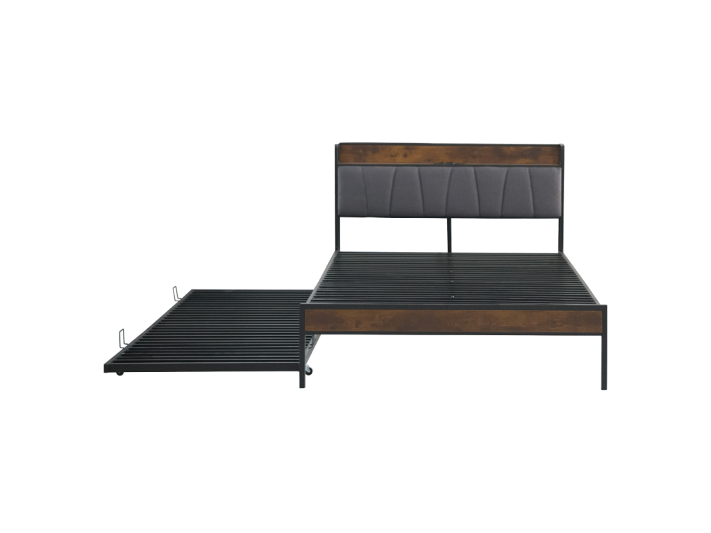 Posteľ s roštom a výsuvnou prístelkou, 160x200, čierna/sivá, NORDO