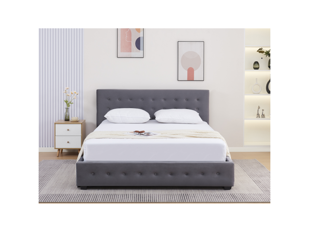 Posteľ s úložným priestorom, 160x200, sivá, MINDY