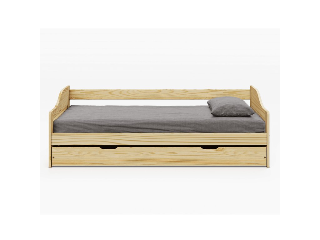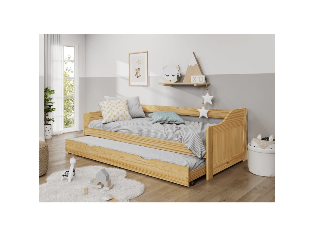 Posteľ s výsuvnou prístelkou, prírodná, masív, 90x200, LAURA NEW