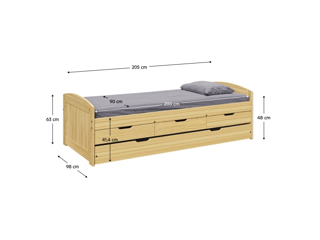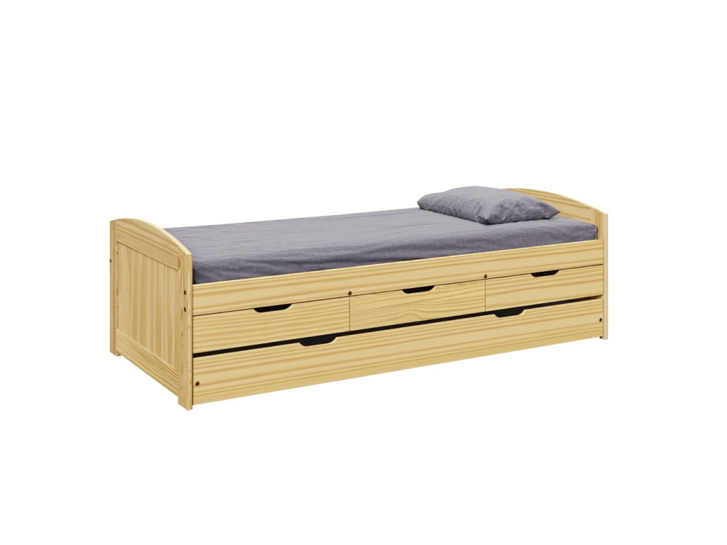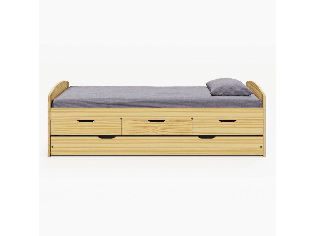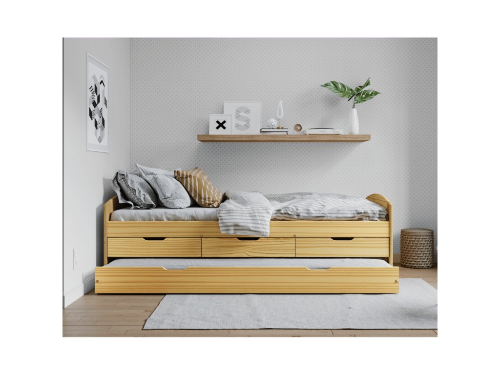 Posteľ s výsuvnou prístelkou, prírodná, masív, 90x200, MARINELLA NEW