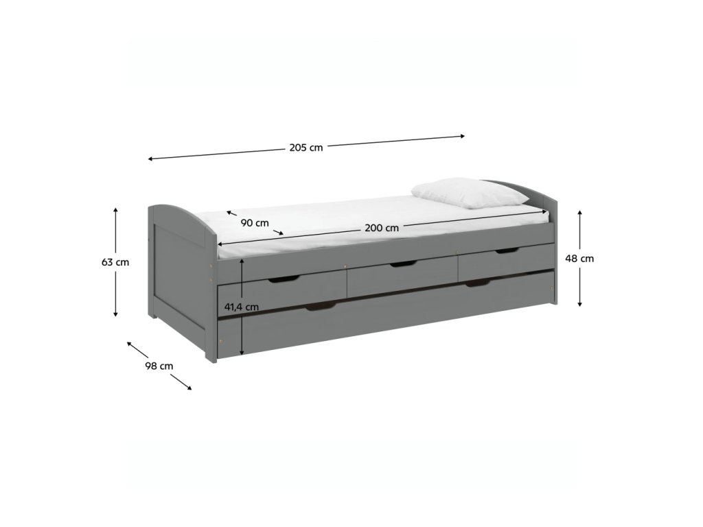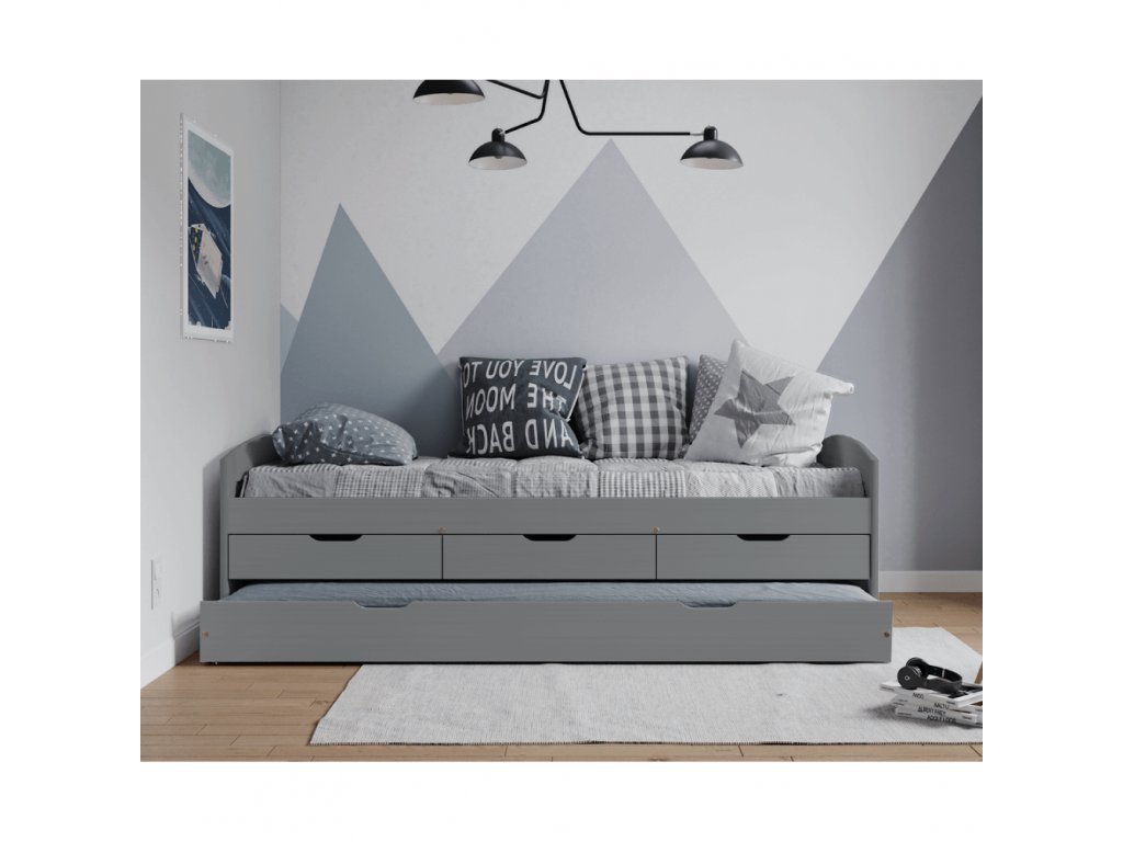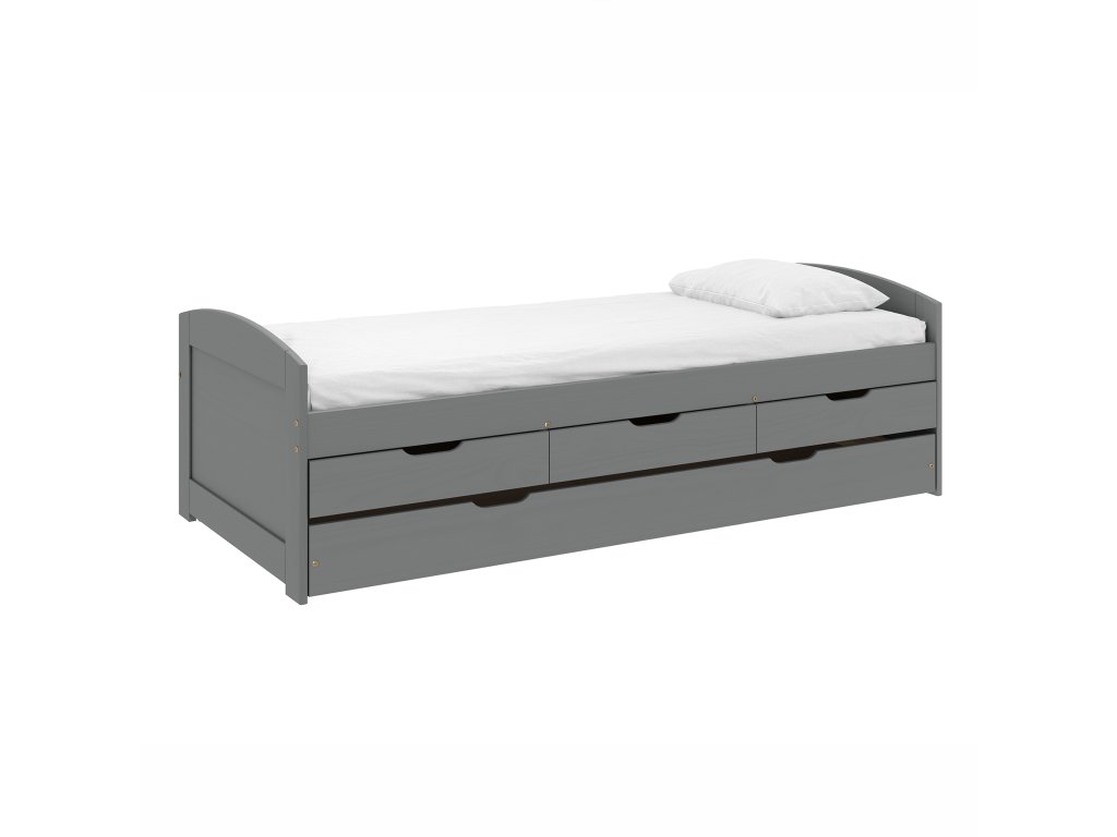 Posteľ s výsuvnou prístelkou, sivá, masív, 90x200, MARINELLA NEW