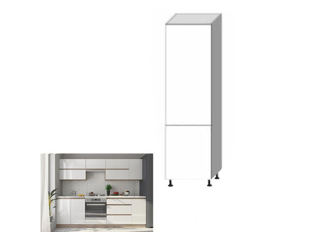 Potravinová skrinka D 60, vysoký biely lesk/dub sonoma, pravá, LINE