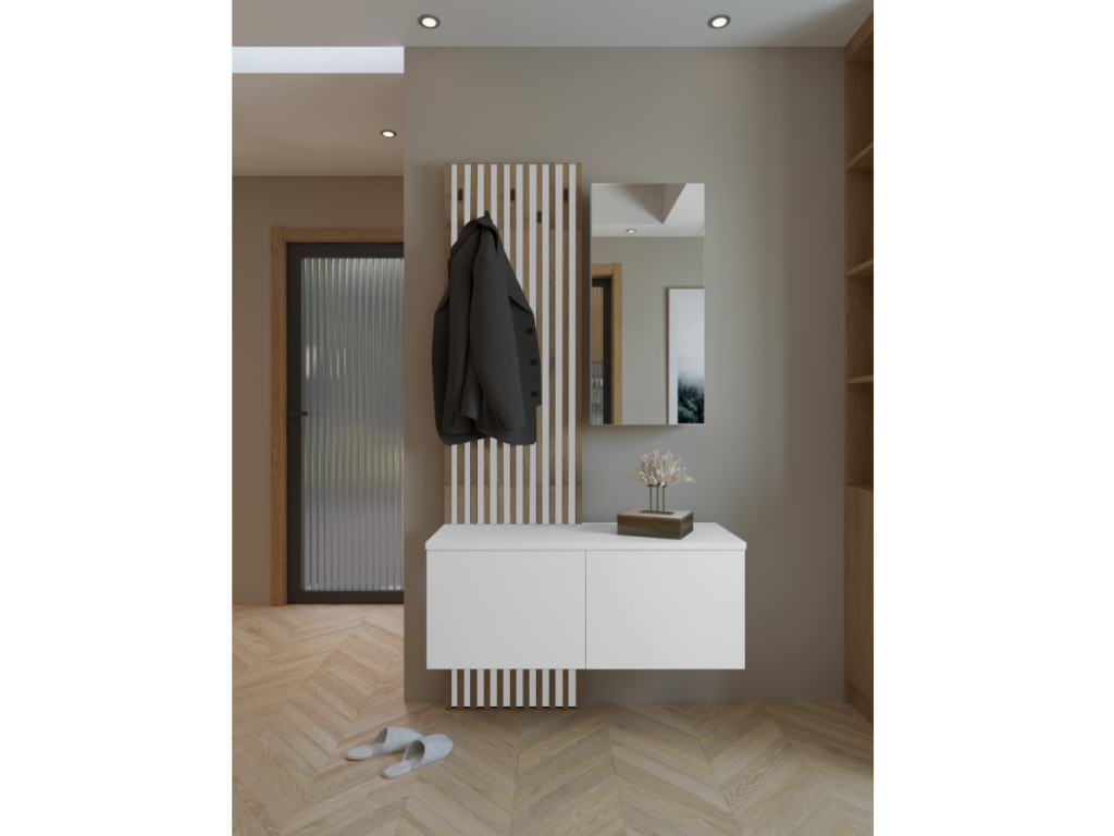 Predsieňová zostava, biela/dub artisan, REBEKA