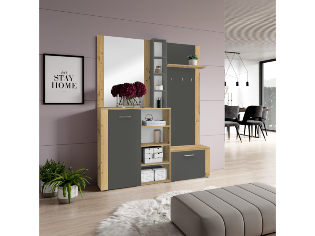 Predsieňová zostava, dub artisan/grafit, FANDU
