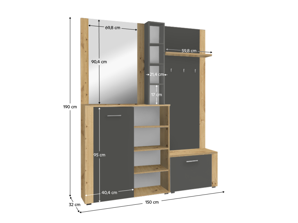 Rozmery (ŠxHxV): 150x32x190 cm