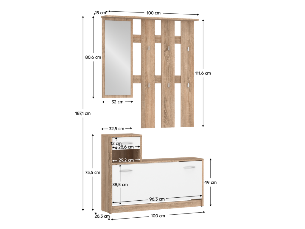 Rozmery (ŠxHxV): 100x26,3x187,1 cm