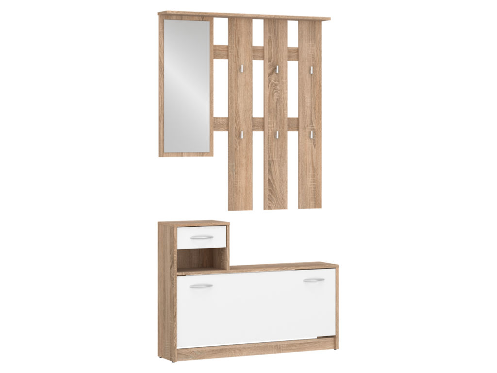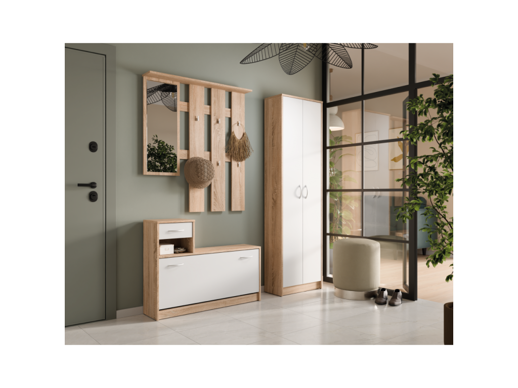 Predsieňová zostava, dub sonoma/biela, VIRA-MECKI NEW