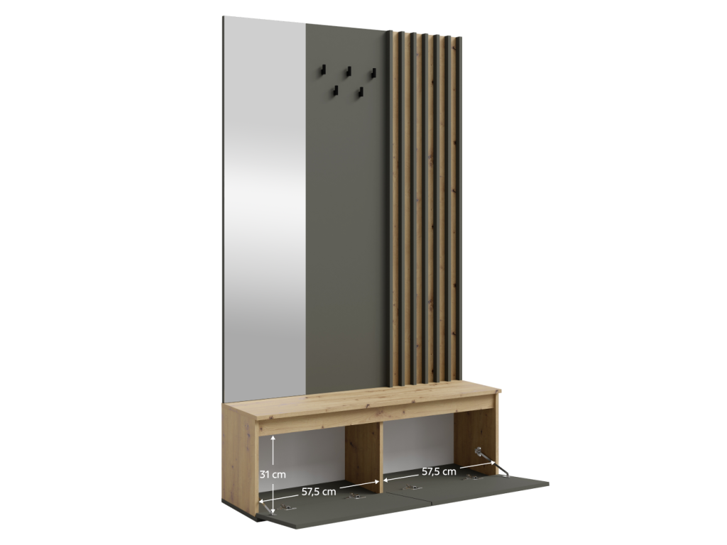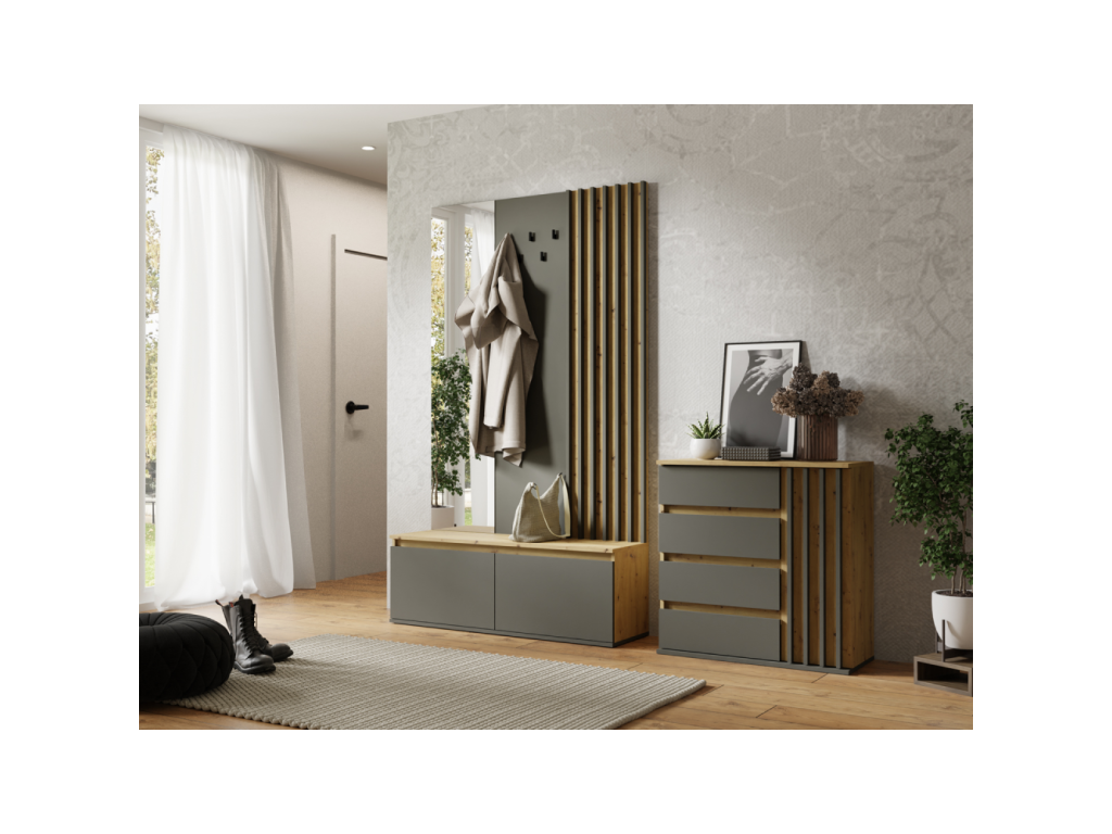 Predsieňová zostava, grafit/dub artisan, DERIS