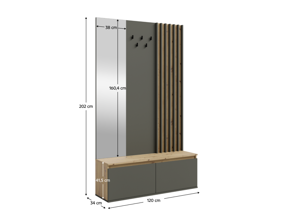 Rozmery (ŠxHxV): 120x34x202 cm